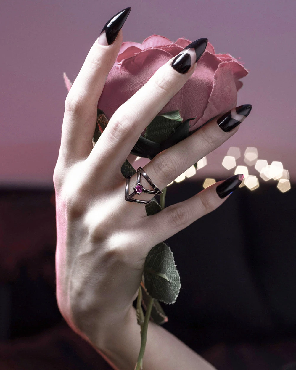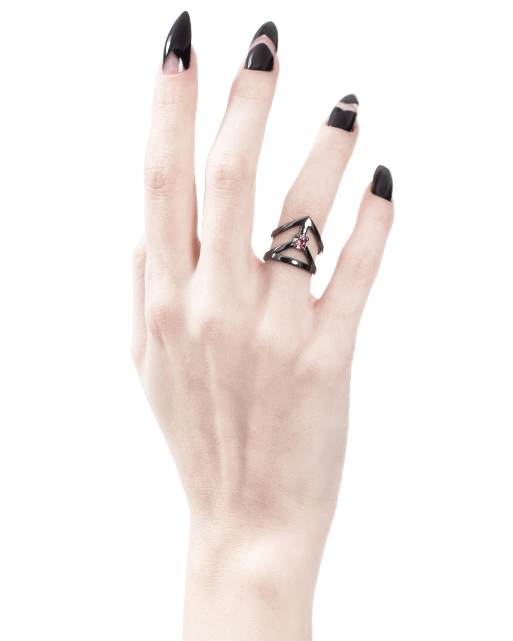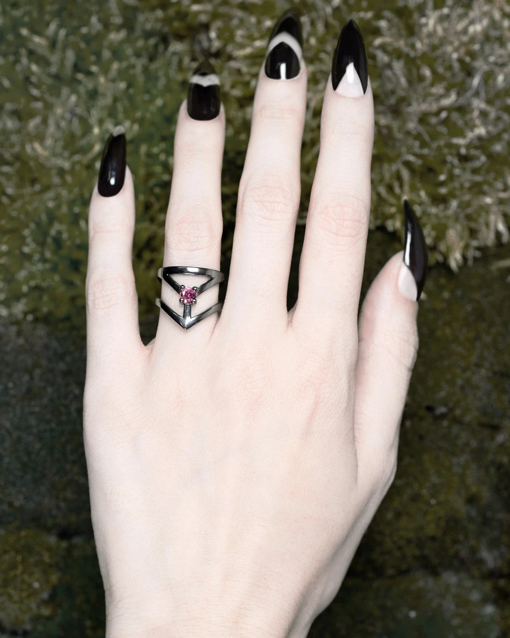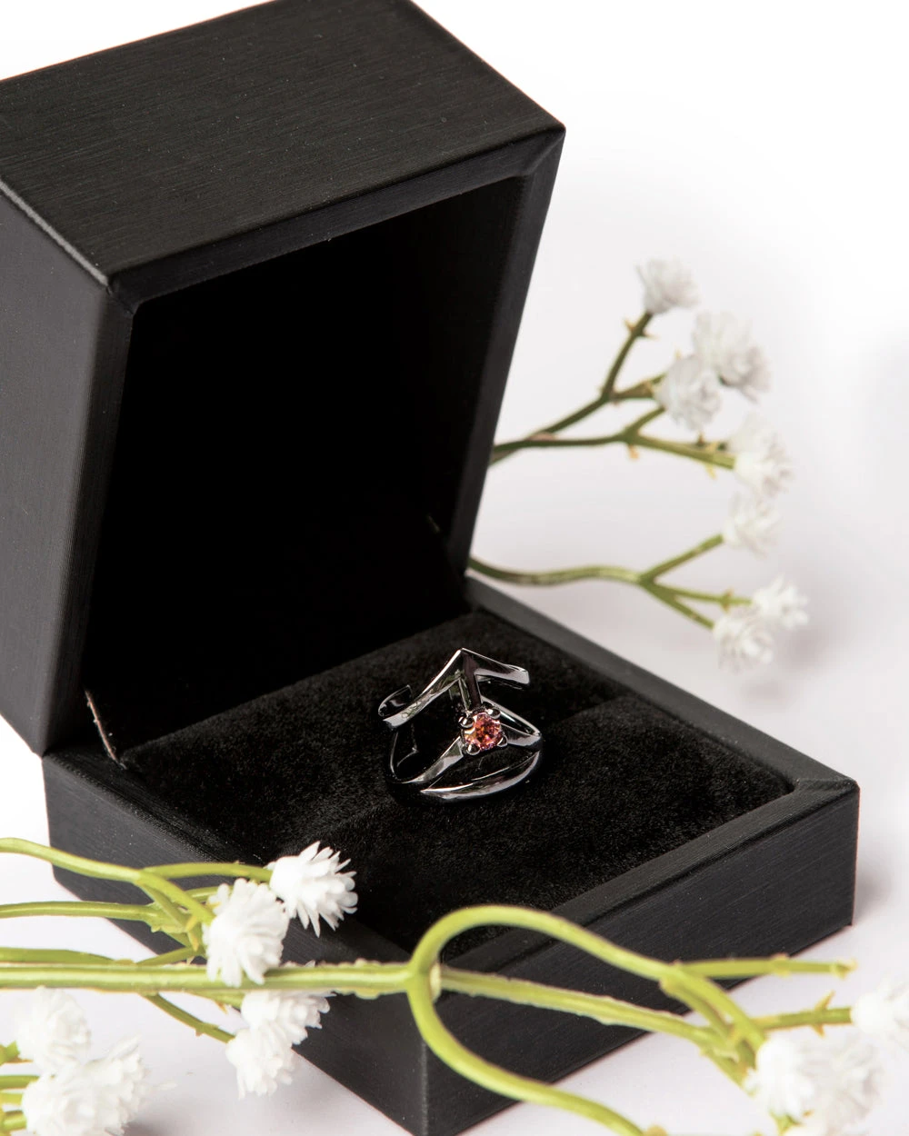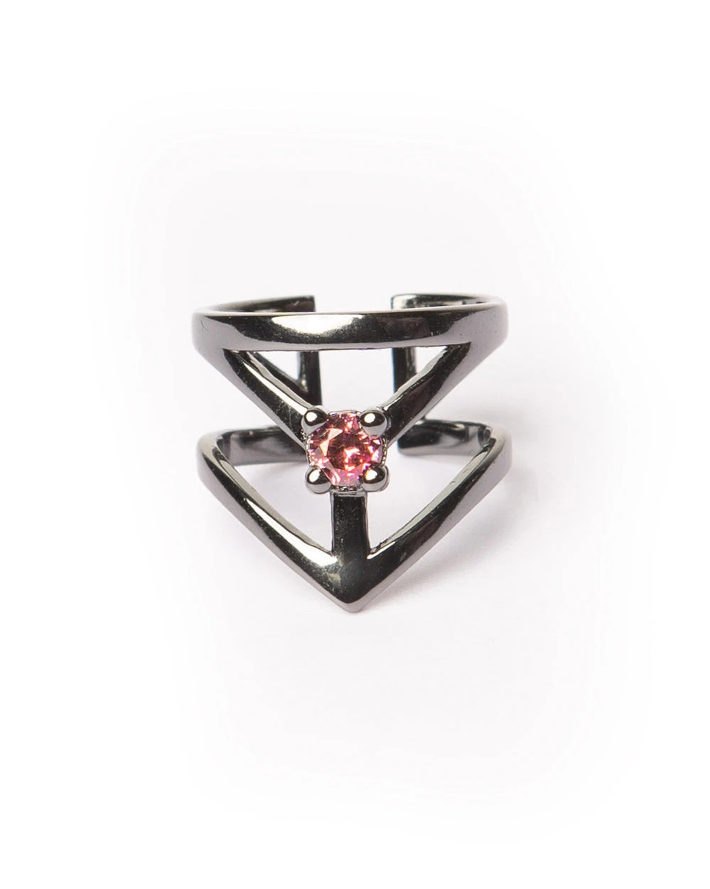 A Mystical Sterling Silver midi Ring with an 18 Karat Black Gold Plating and a Rhodolite Cubic Zirconia.