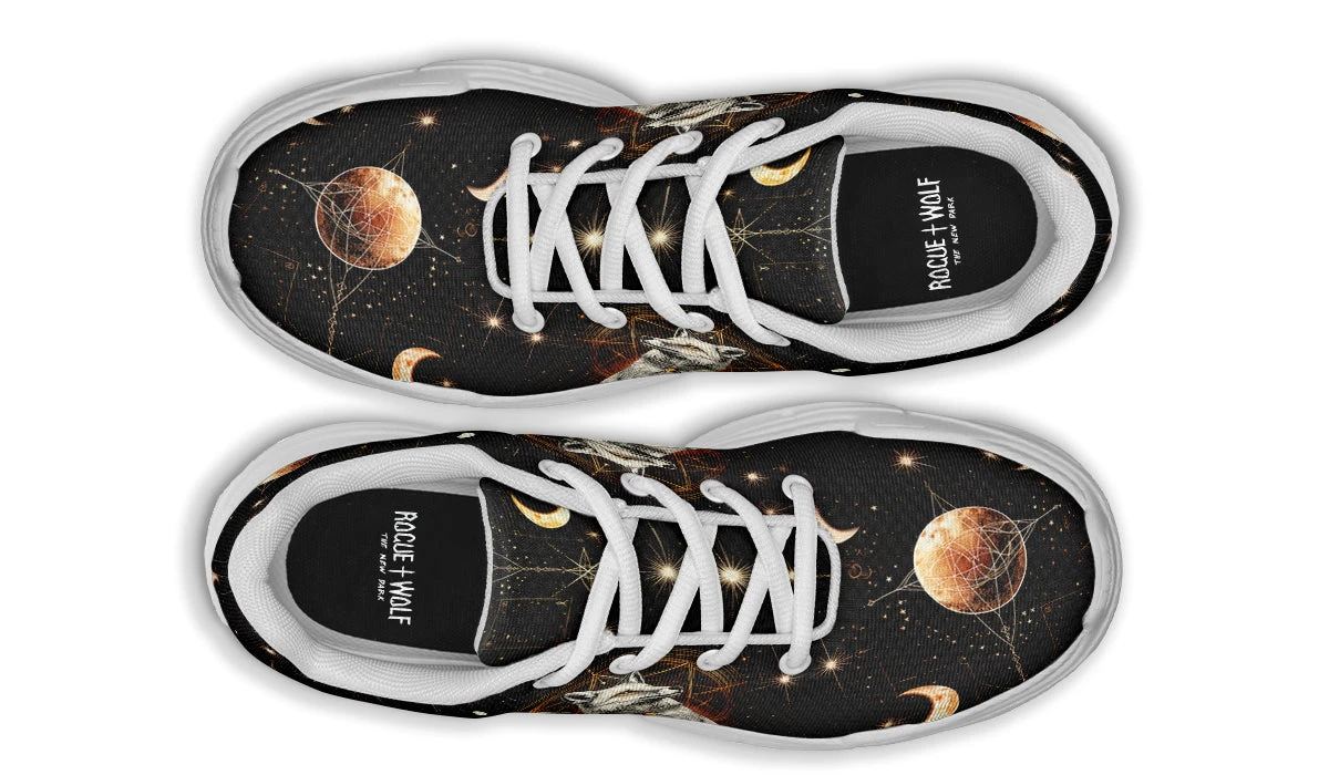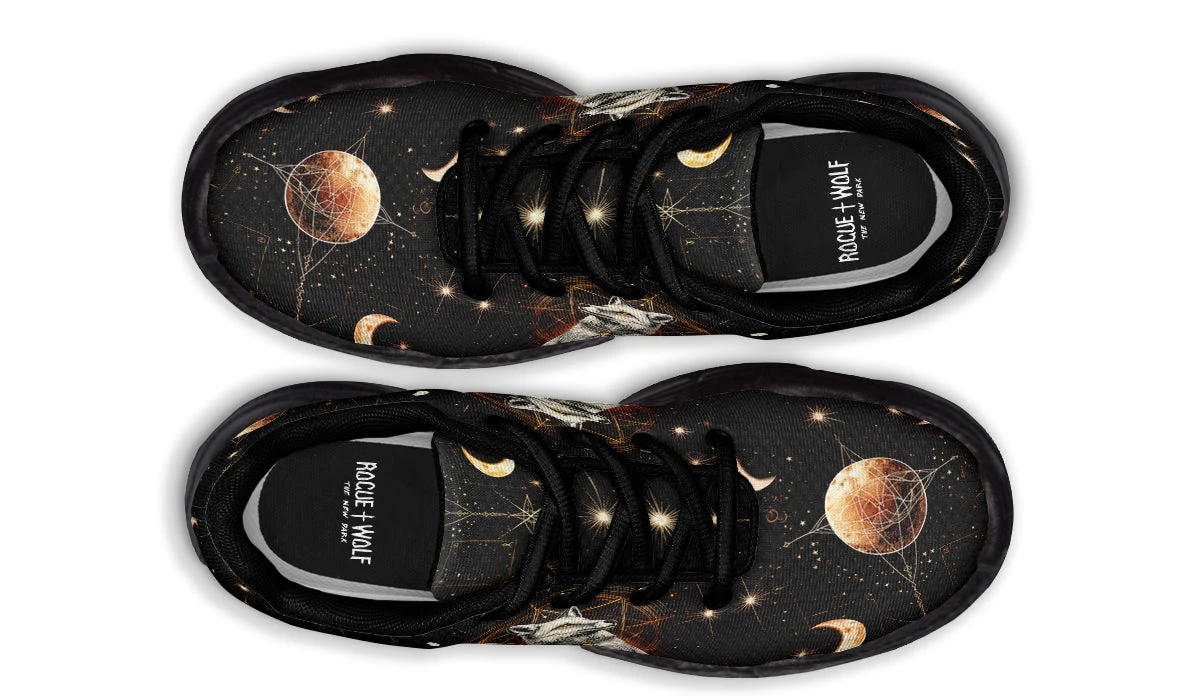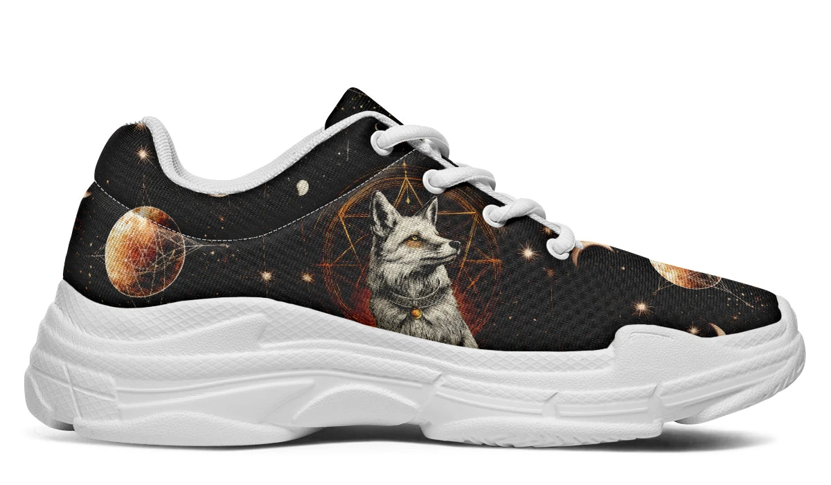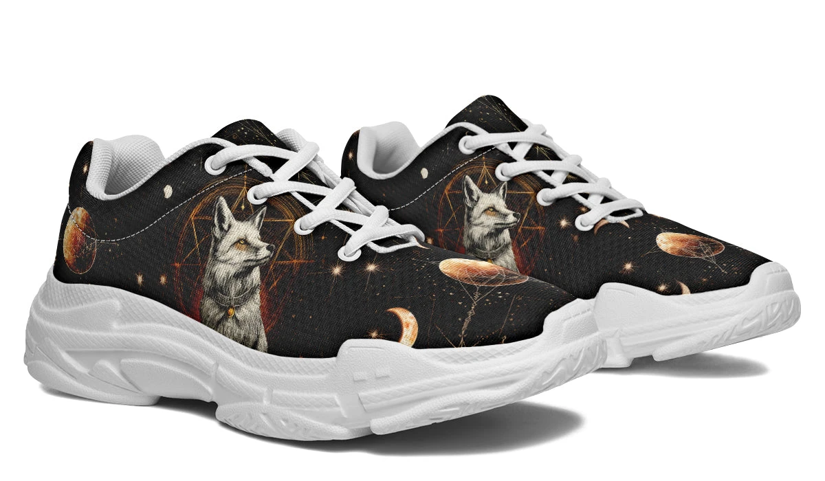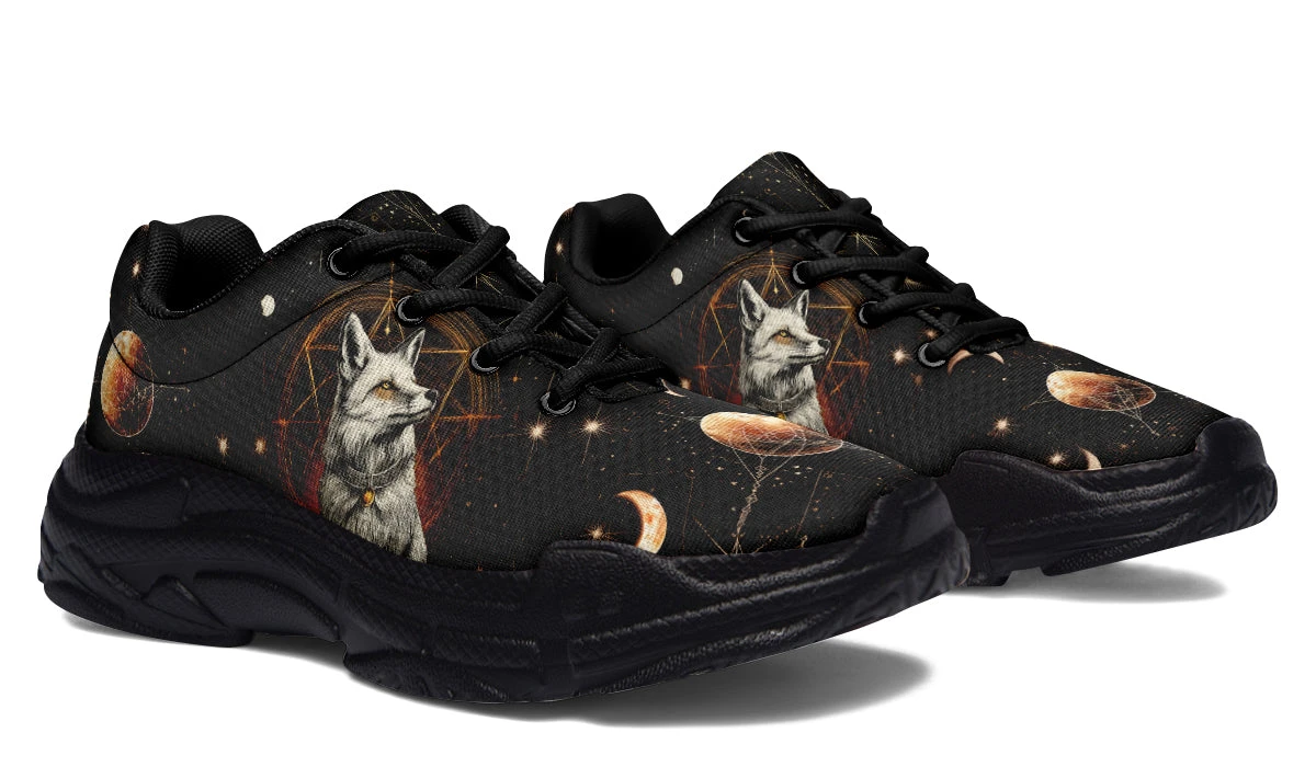 Embark on a mystical journey every time you step out with the Astral Fox Chunky Sneakers. Crafted for those who see the world through a cosmic lens, these sneakers blend dark enchantment with celestial charm. Let your feet tell the tales of the night as you wander through the earthly realm.