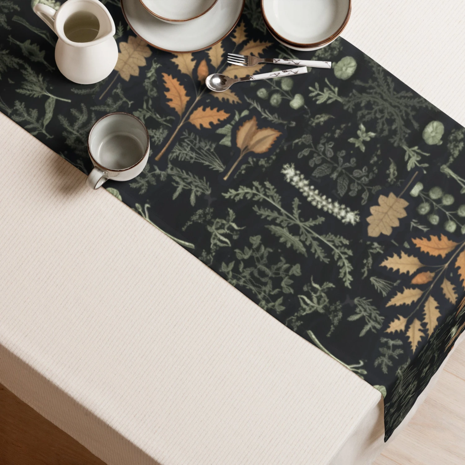 Whisk your gothic kitchen back to the ethereal season of falling leaves and crisp air with the Autumn Memoir Table Runner. Blending the nostalgic charm of golden brown leaves with the enchanting aura of dark academia, this botanical piece is an ode to the whispered tales of the autumnal equinox – perfect for a witchy alt style. Revel in the witchy allure as your table becomes an autumn-infused nexus of occult pagan goth tradition and gothic home decor.