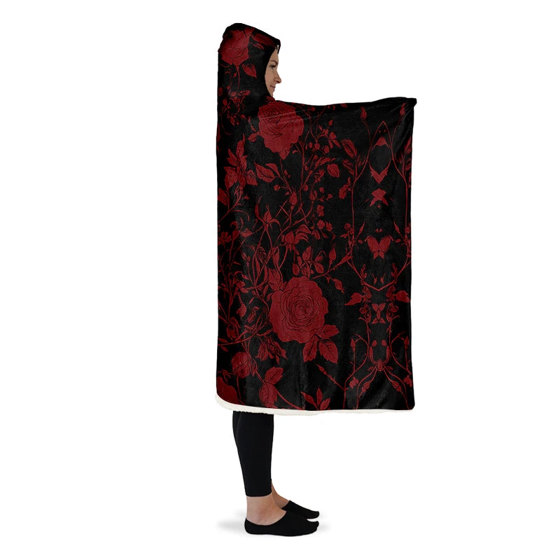 Wrap Yourself in Enchantment with the Blood Rose Romance Hooded Blanket.