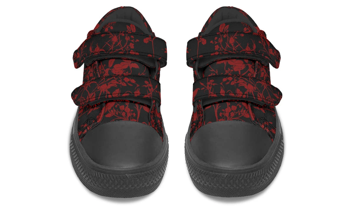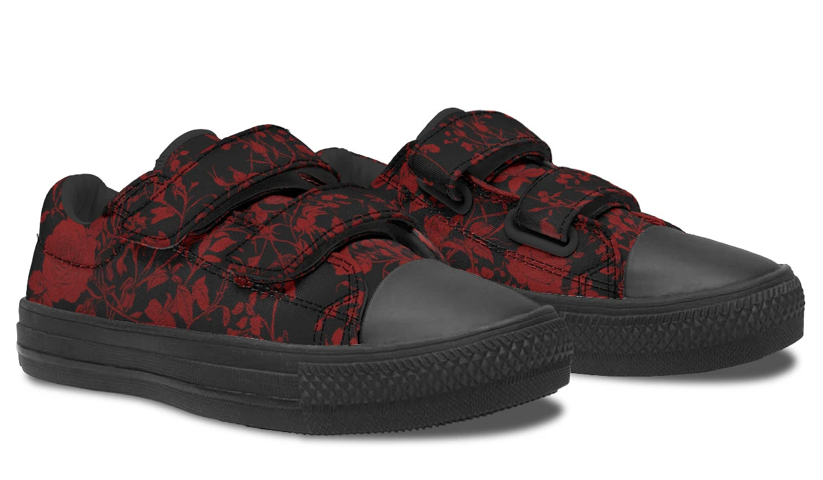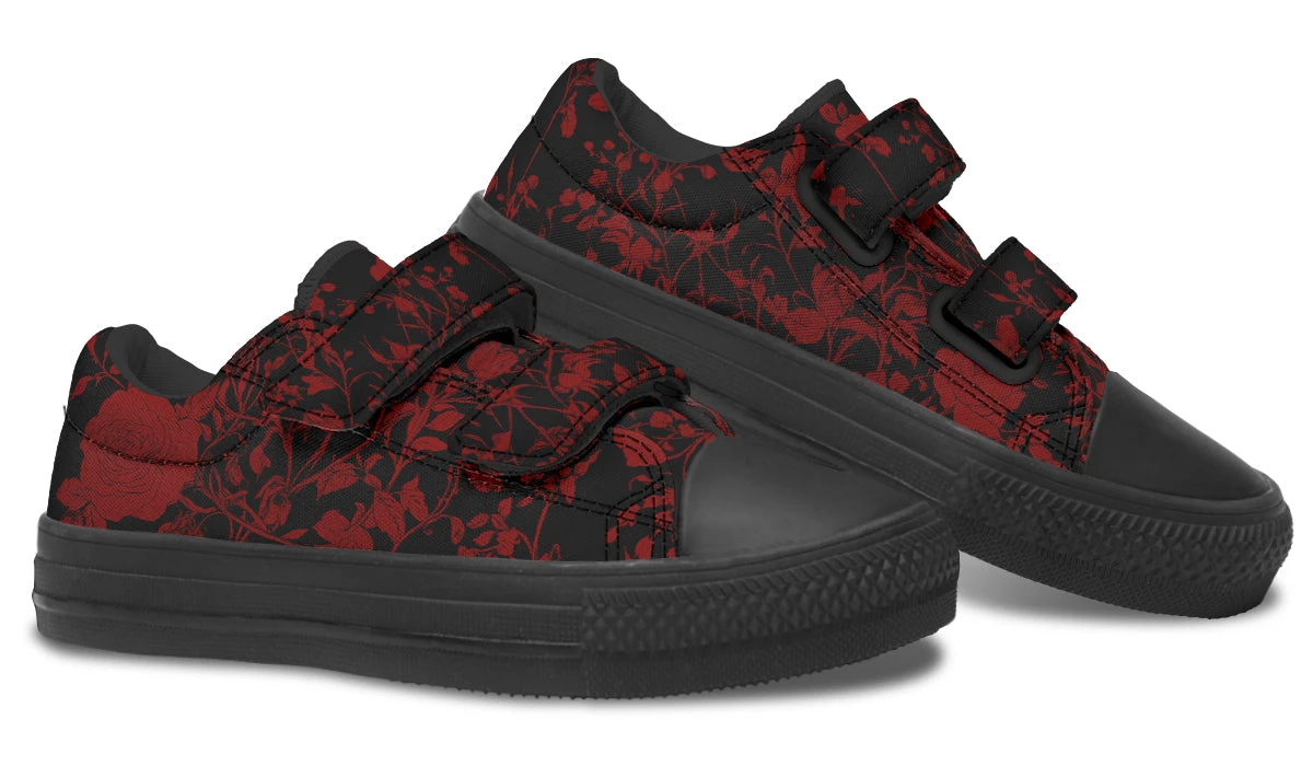 Step into an enchanting world where shadows dance with roses, as our Blood Rose Romance Kids Low Tops capture the spirit of young witchy wanderers. With blood-red vines weaving tales of mystery, these shoes are a spellbinding accessory for your little one’s wardrobe.