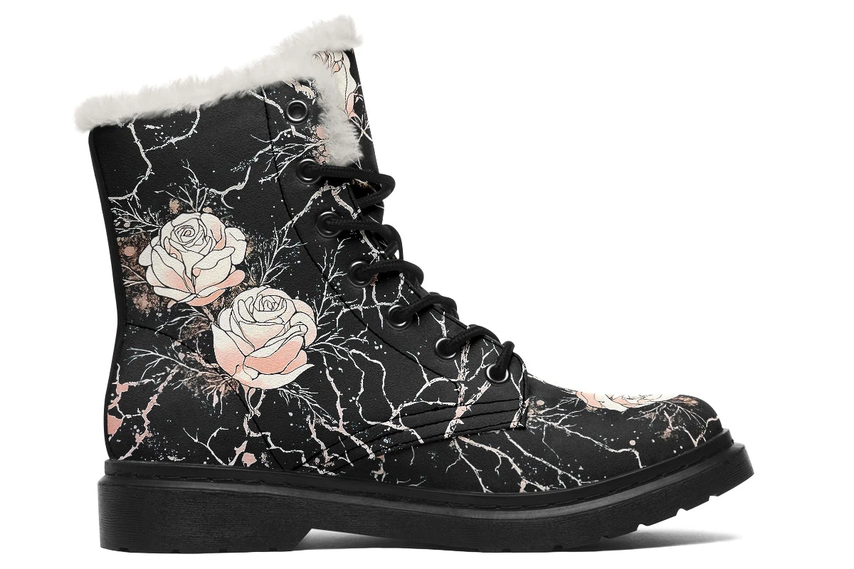 Step into the realm of enchantment with Blush Kintsugi Rose Winter Boots. These boots, adorned with delicate blush pink roses and subtle cracks on a dark canvas, merge warmth and sophistication. Ideal for The Coven who embrace their alternative, gothic soul even in the chilliest seasons.