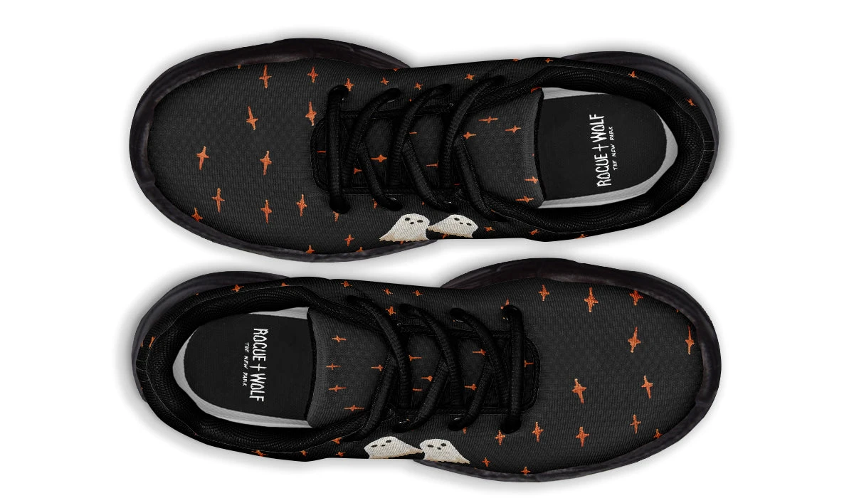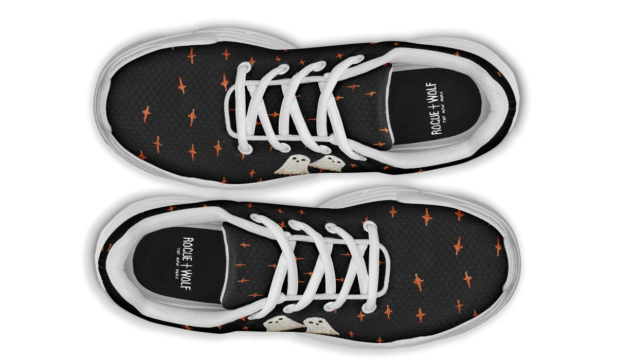 Make a ghostly statement with the Boo Chunky Sneakers, where two spectral white ghosts dance across a star-studded night. When you wear these sneakers, you’re not just stepping out; you’re stepping into a story of enchantment.