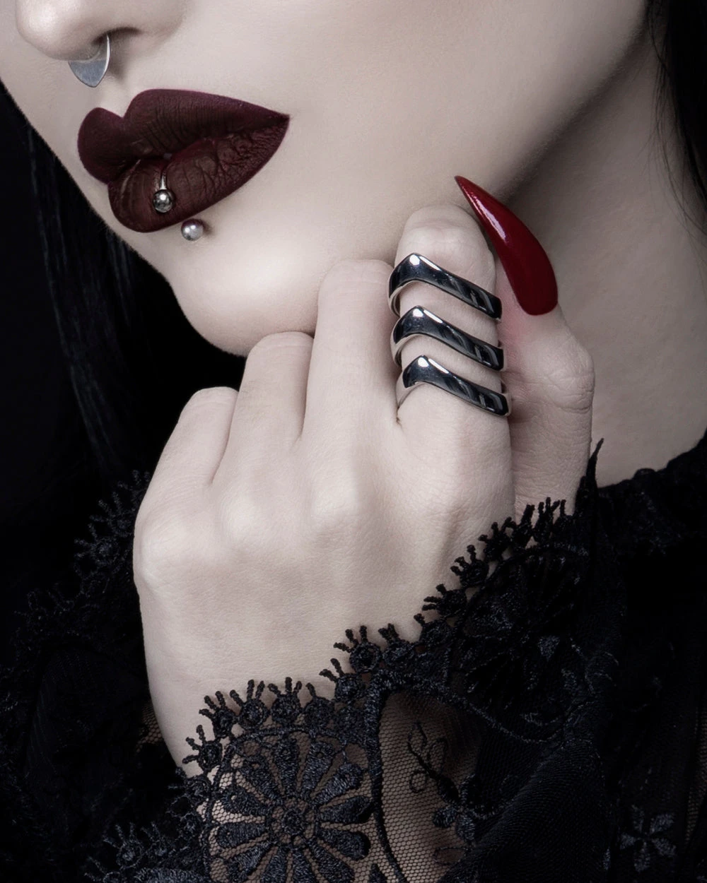 A cool Stainless Steel Ring with a triple chevron and a Mirror Polish finish.