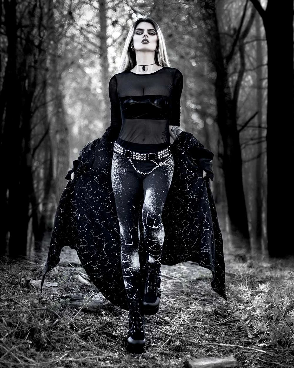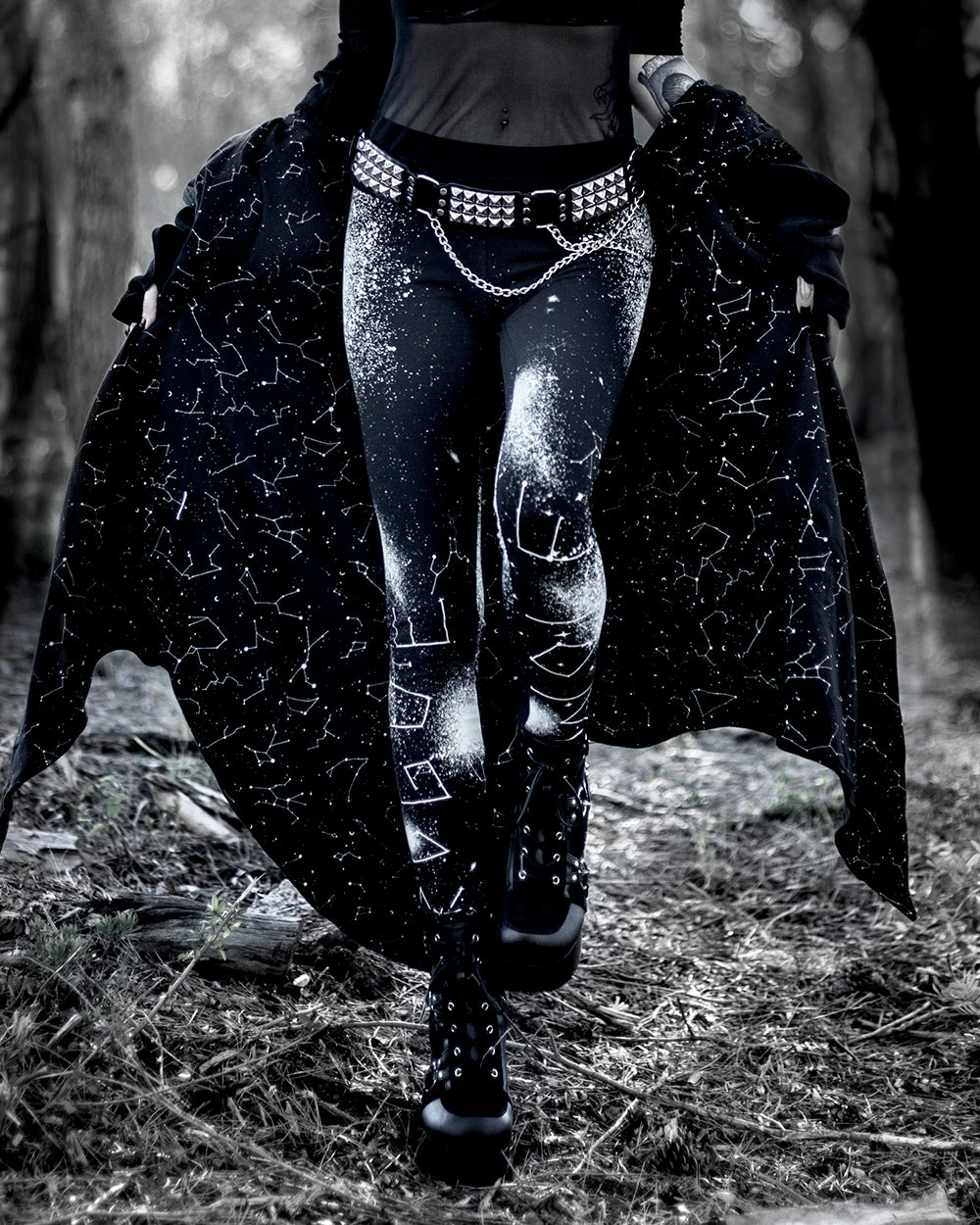 The Coven knows no bounds, and neither should your activewear. Our leggings are ideal for those who flow from warrior pose to warrior spirit in leisurewear that transcends boundaries. Adorned with the night’s tapestry, they’re a staple for any twilight gathering or moonlit ritual.