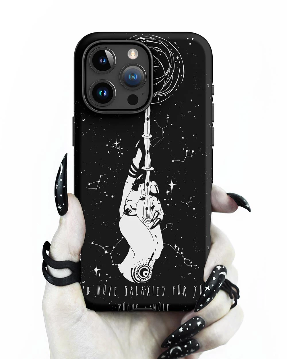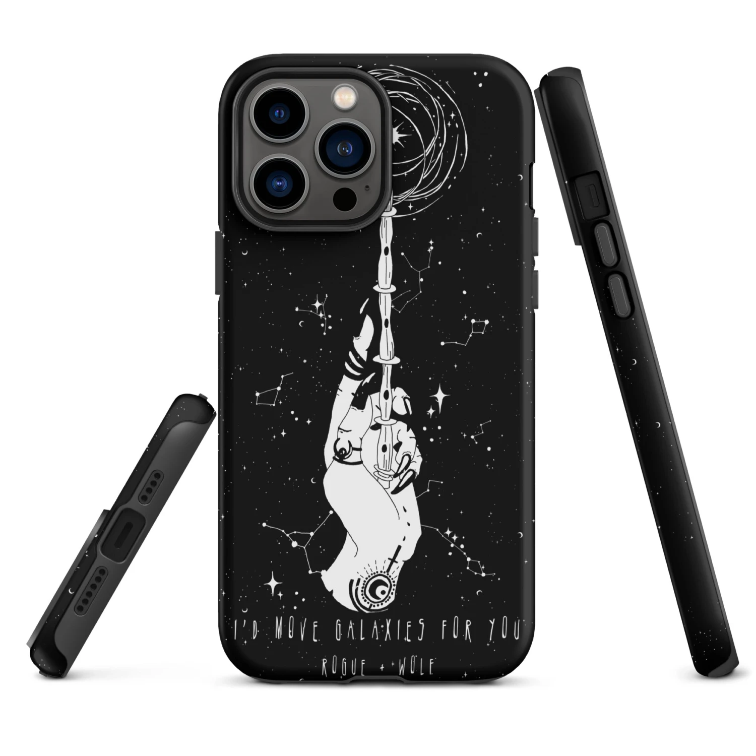 Wrap your device in the mystic embrace of the “Cosmic Devotion Tough Phone Case”. Experience a realm where the grunge aesthetic waltzes with ethereal intergalactic energies, summoned by a witch’s tender hand. Crafted for the souls who’d move galaxies for their loved ones, its aura is infused with whispers of dark academia and echoes of occult pagan goth tales, making it the quintessential artefact for your gothic home office. Let the stars unveil their secrets through the protective embrace of this otherworldly charm.