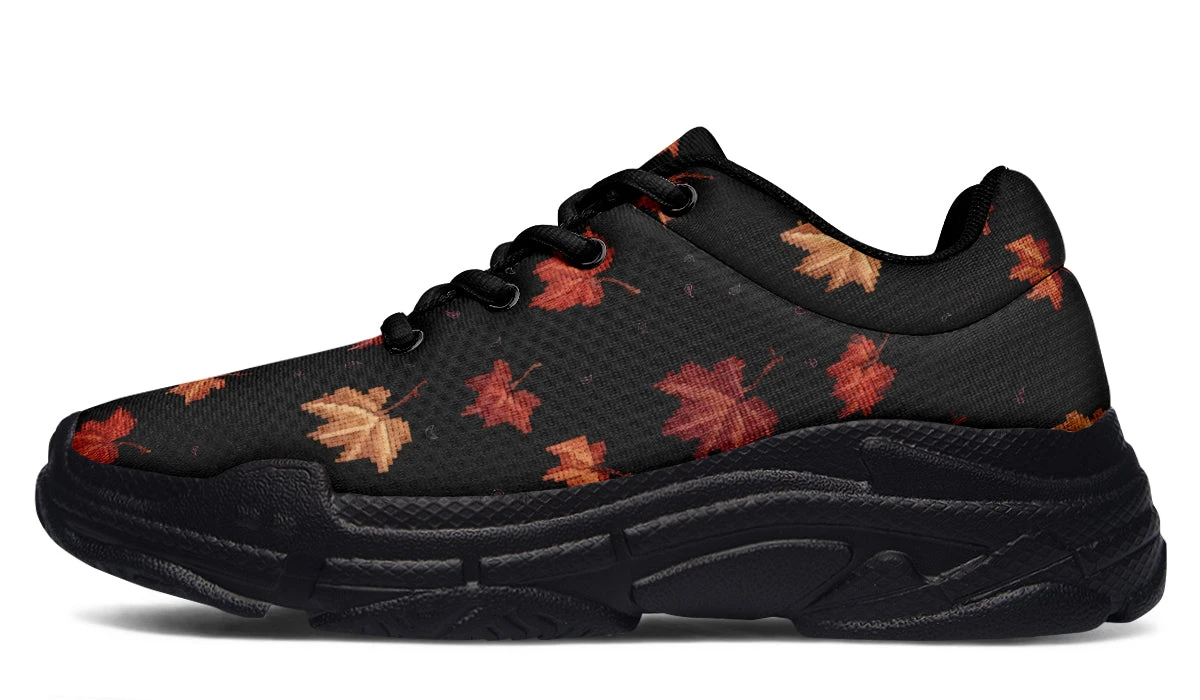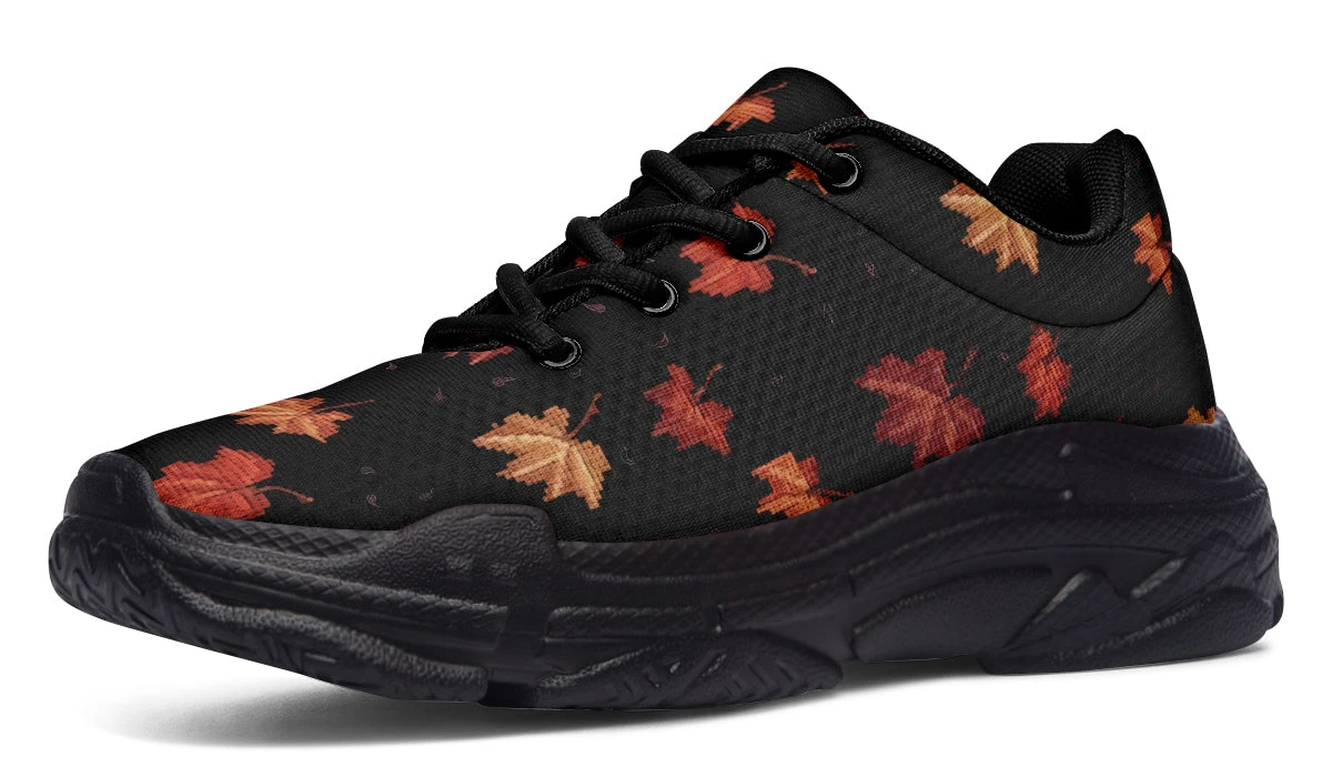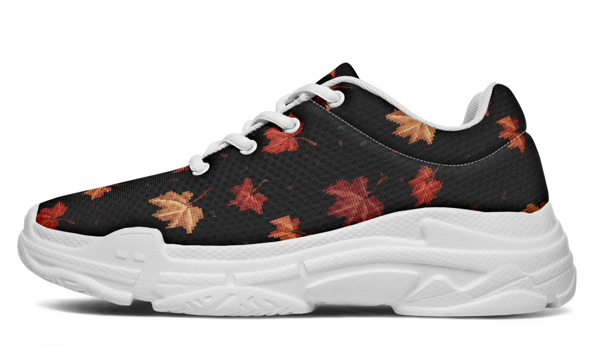 Embrace the magic of the season with these bewitching chunky sneakers, printed with a charming cross-stitch pattern of red maple leaves. These shoes are so cozy, you might just find yourself accidentally summoning a pumpkin spice latte (or at least feeling like you’re walking on a carpet of crisp fallen leaves).