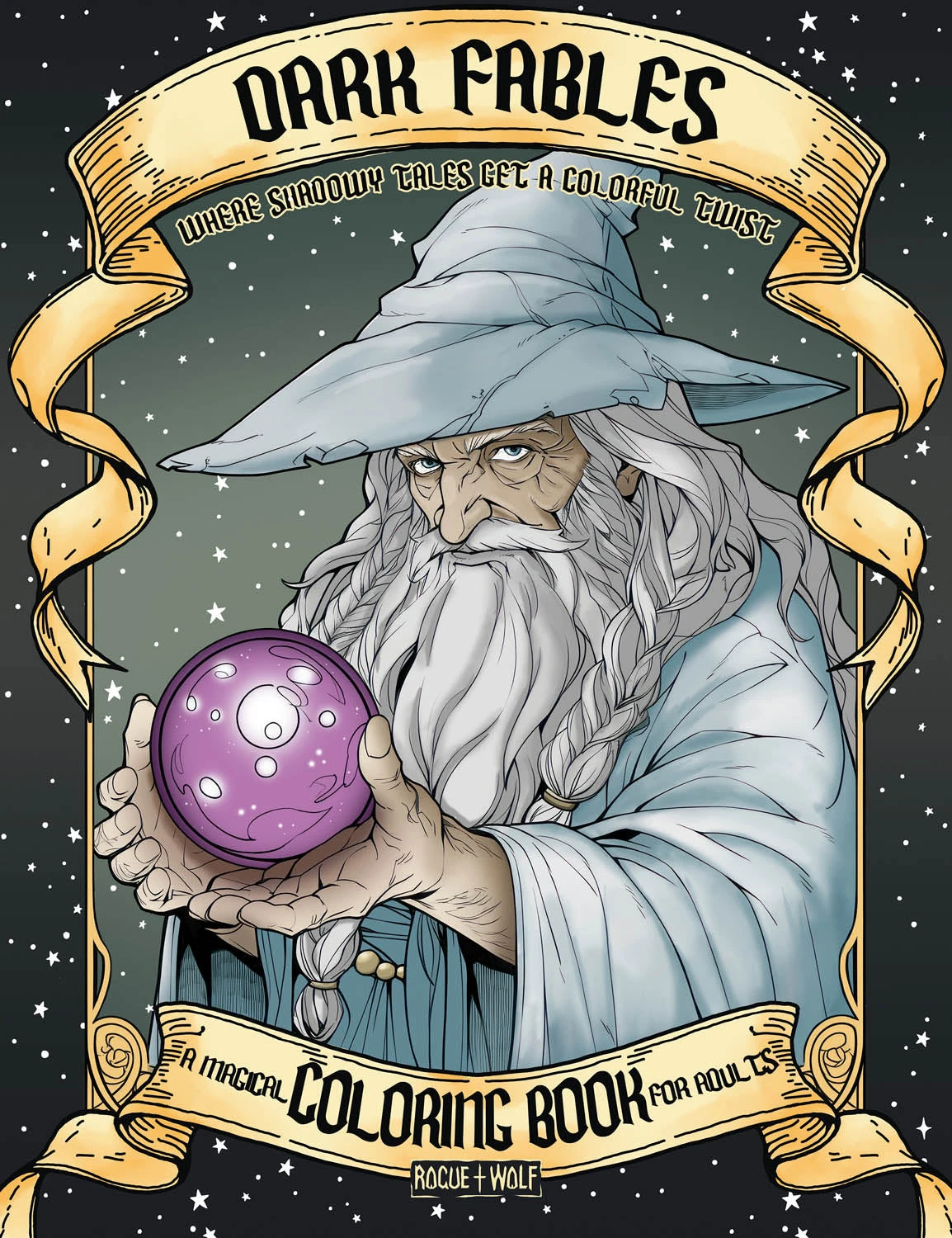 Stress Relief & Calming Art Therapy with 31 Dark Fairytale Illustrations of Witches, Elves, Fairies, Magical Creatures & Fantasy Landscapes by Rogue + Wolf