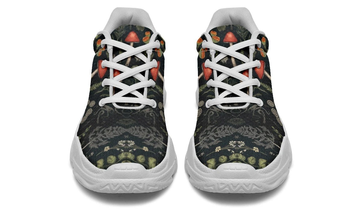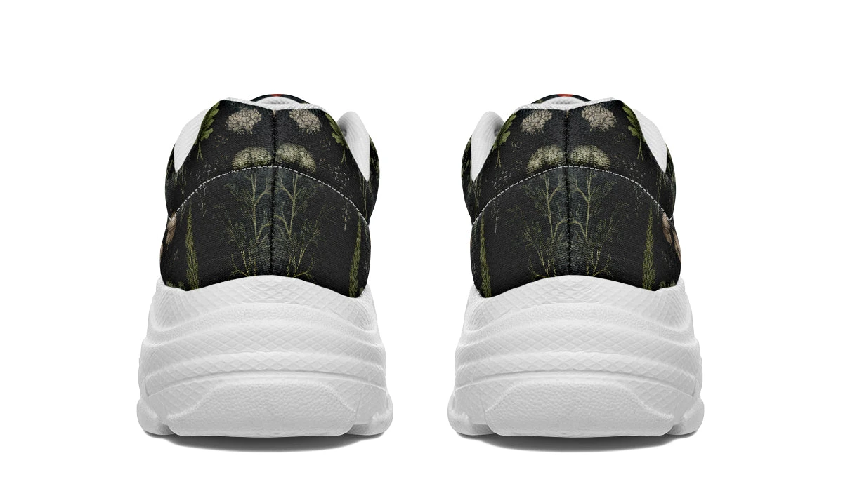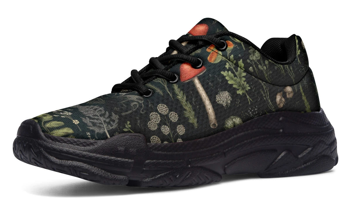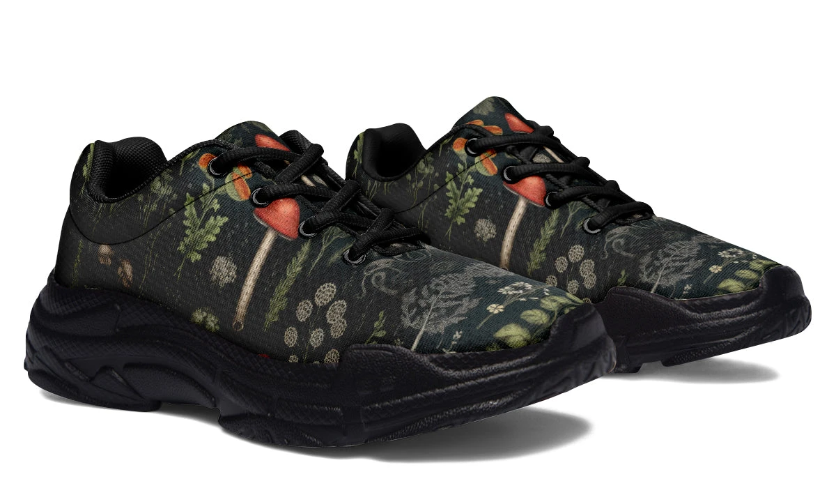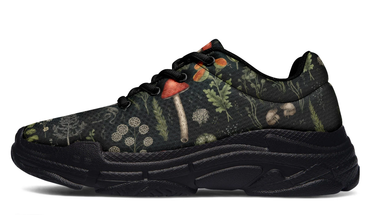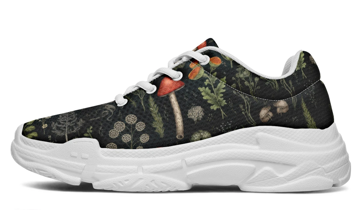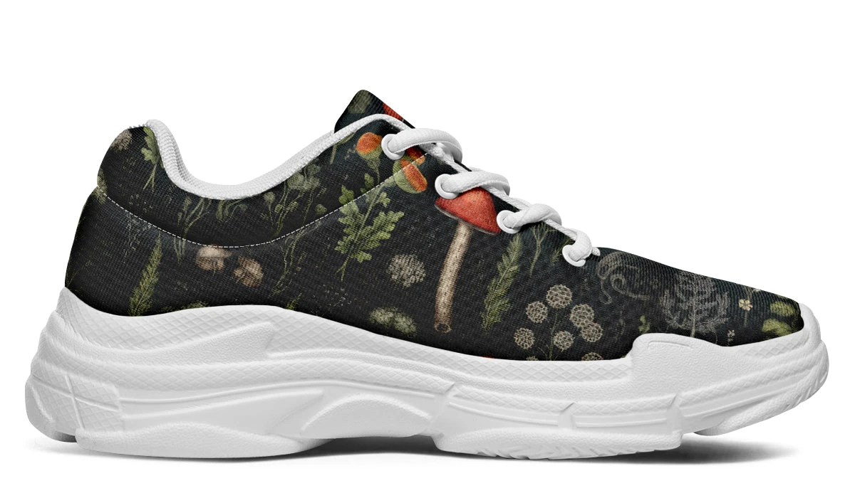 Step into a world of enchantment with these chunky sneakers, adorned with an old botanical book-style pattern featuring various plants, herbs, leaves, and mushrooms – perfect for a day of foraging ingredients for your next winter spell. These shoes are so magical, you might just find yourself accidentally summoning a forest spirit (or at least attracting the admiration of fellow nature lovers).