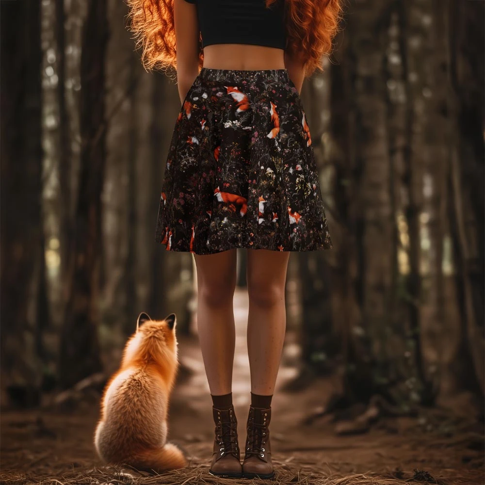 Slip into our Fox Den Skater Skirt and become one with the sly, mystical vibes of an enchanted woodland tale. With art as cunning as your intentions, flaunt this skirt for midnight escapades or moonlit Coven meet-ups—brambles and spells sold separately.