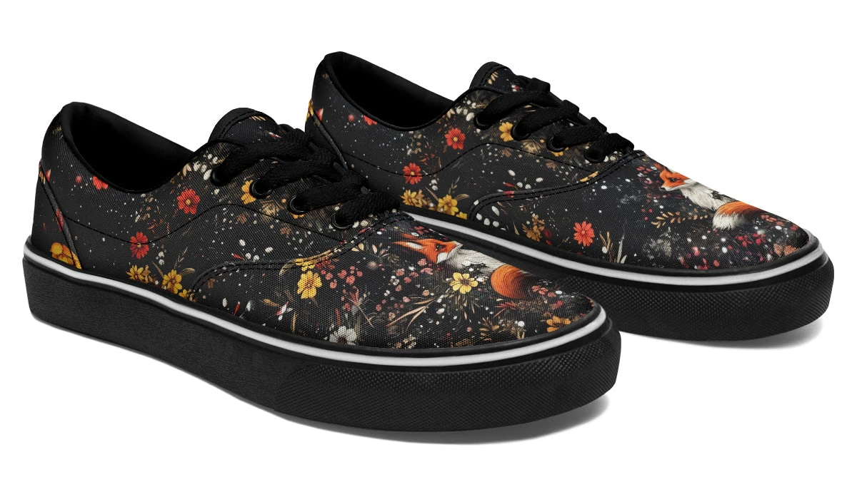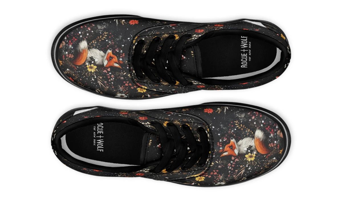 Slide your mortal feet into these enchanted street sneakers, adorned with a curious fox guardian amidst mystical wildflowers and drifting petals. Evoking whispers of fairytale magic, they’re perfect for adding woodland vibes to your everyday haunt. Your sneakers just got hextra special.