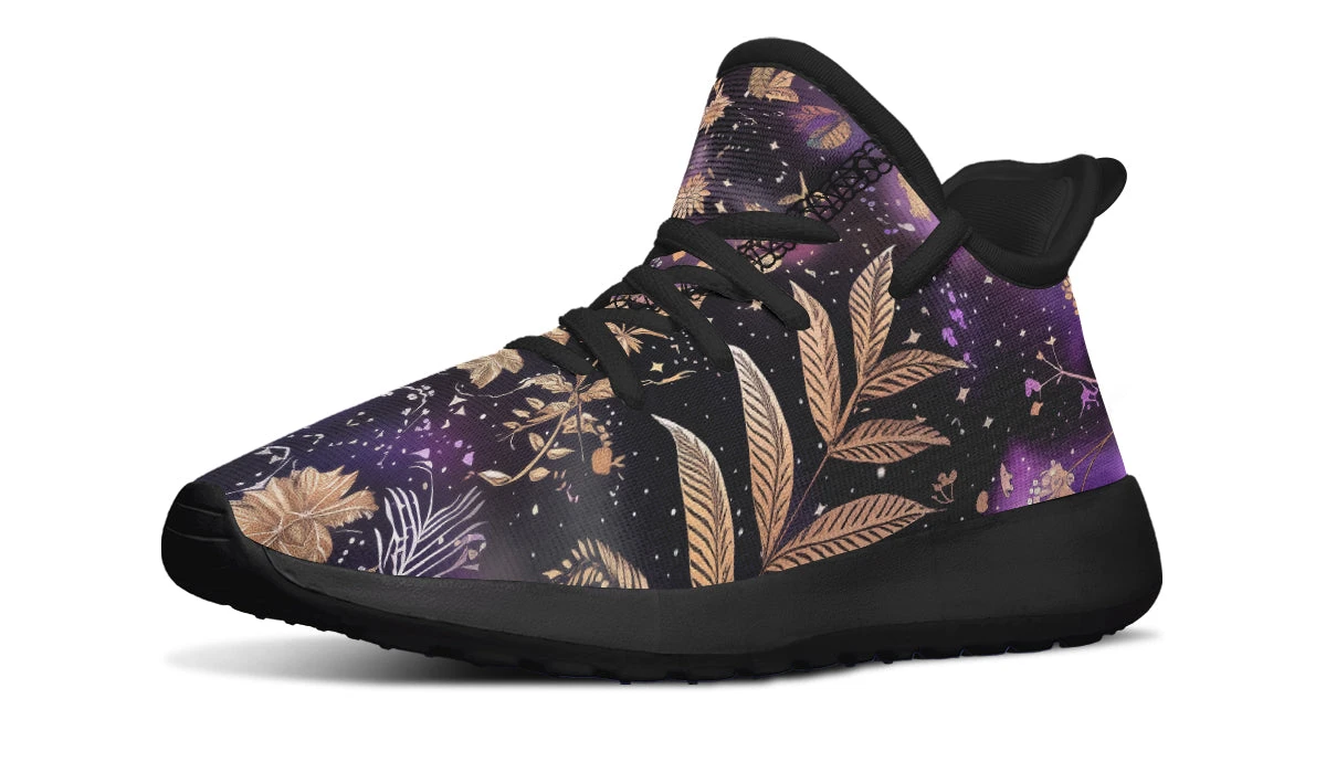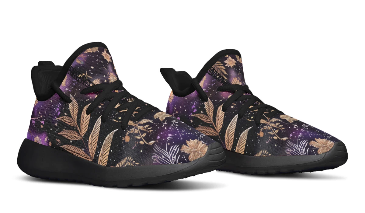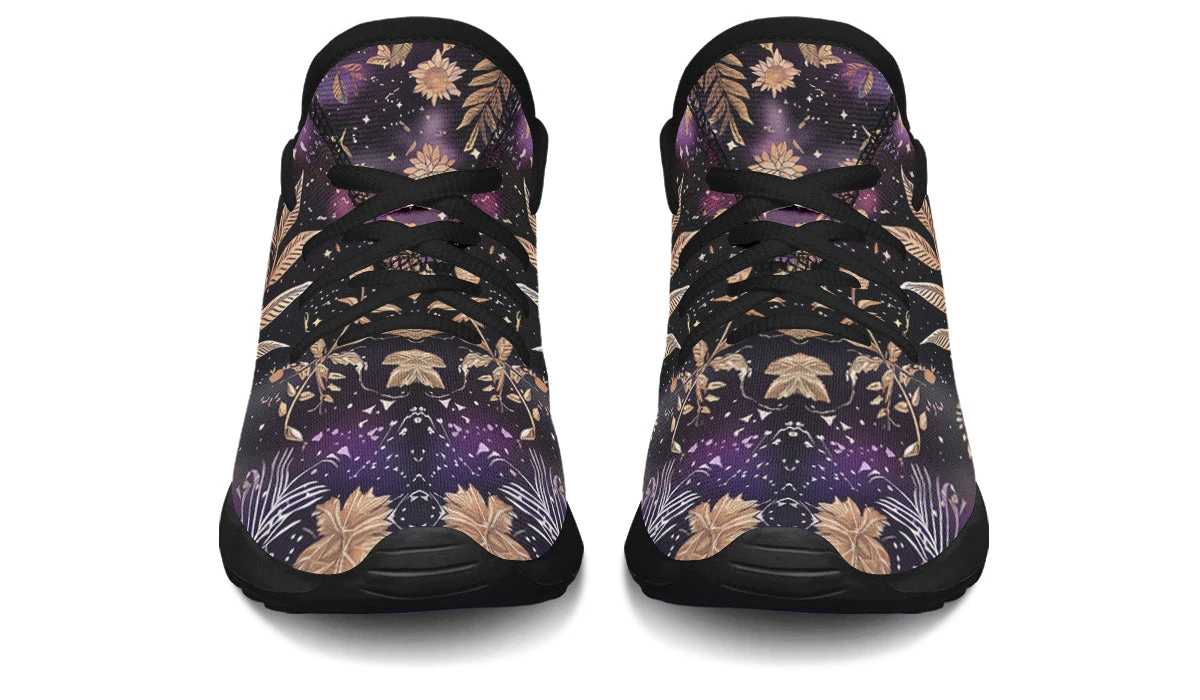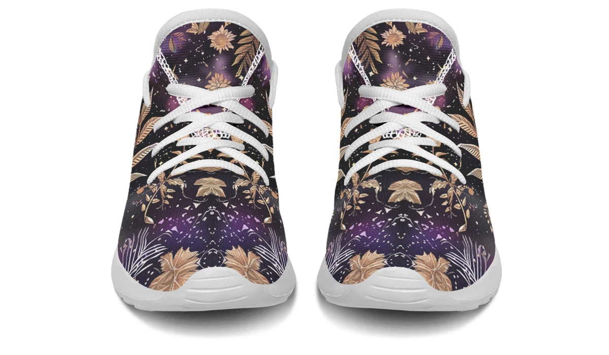 Imagine your little one striding through the cosmos with the Galactic Bloom Kids Sneakers, where nature and stardust dance in harmony. These sneakers bring an otherworldly charm with their enchanting blend of golden botanical elements against a cosmic backdrop that sparkles like a witch’s favorite night sky.
