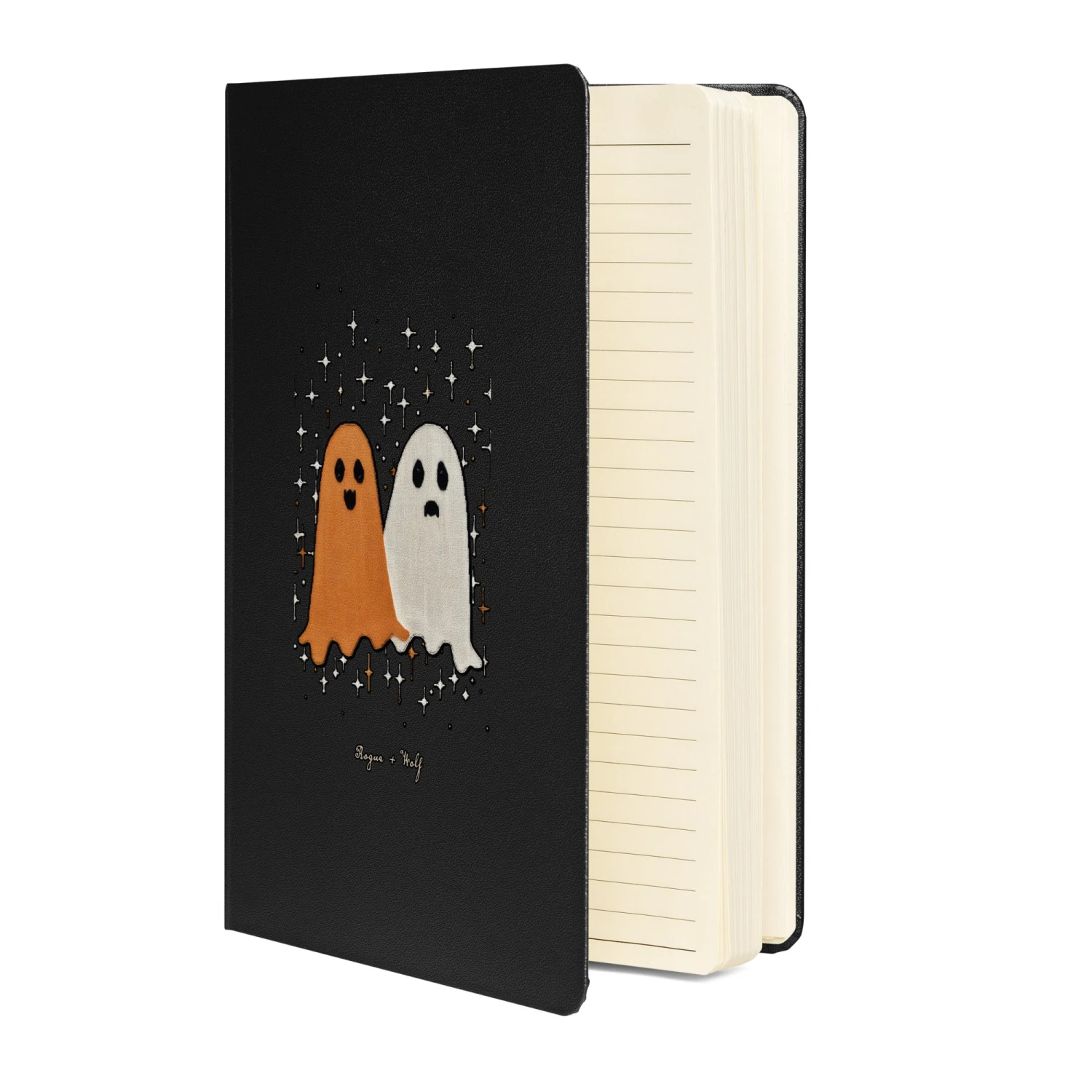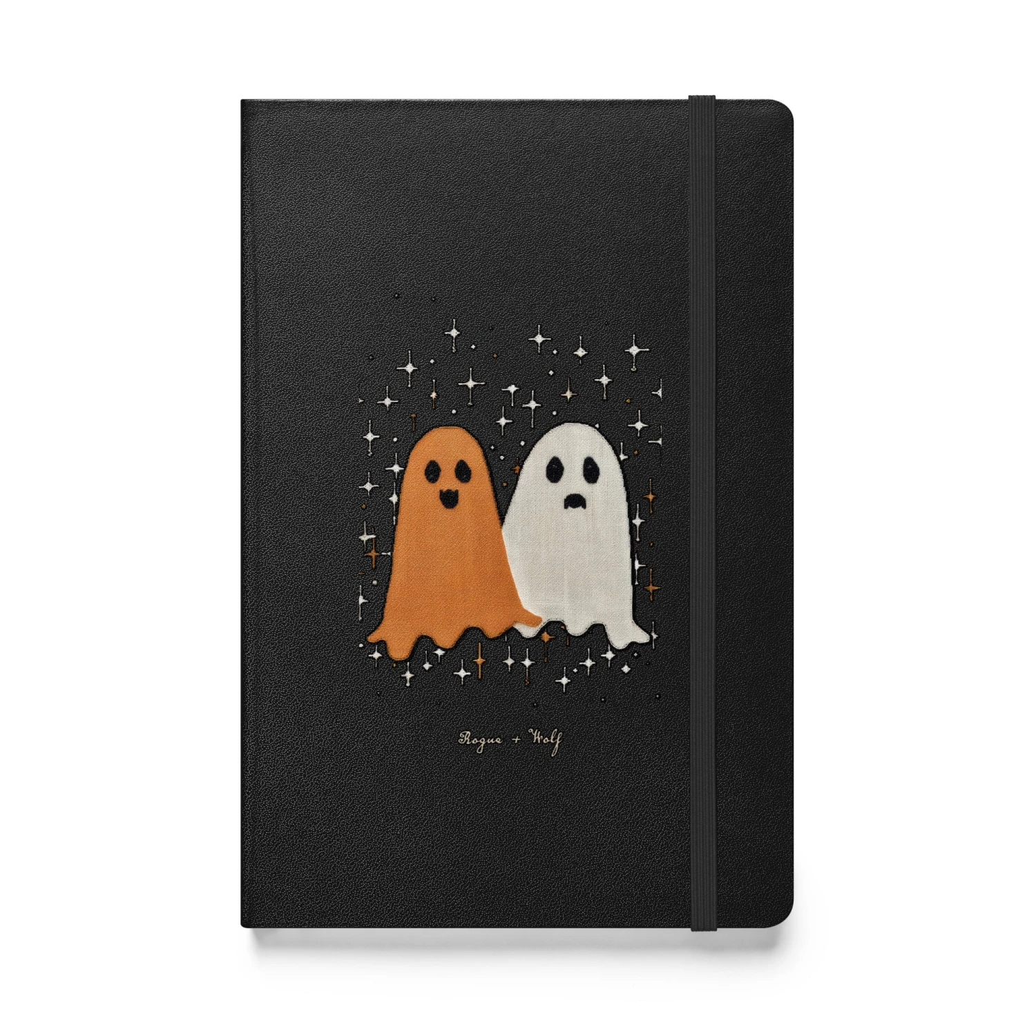 Whisk away into a realm of mystery with our Ghost Besties Hardcover Notebook—a gothic stationery essential where one sprightly orange spirit and its apprehensive white counterpart weave yarns across your notes. Their cross-stitch style bonds redefine the grunge aesthetic, infusing dark charm into every penned spell.