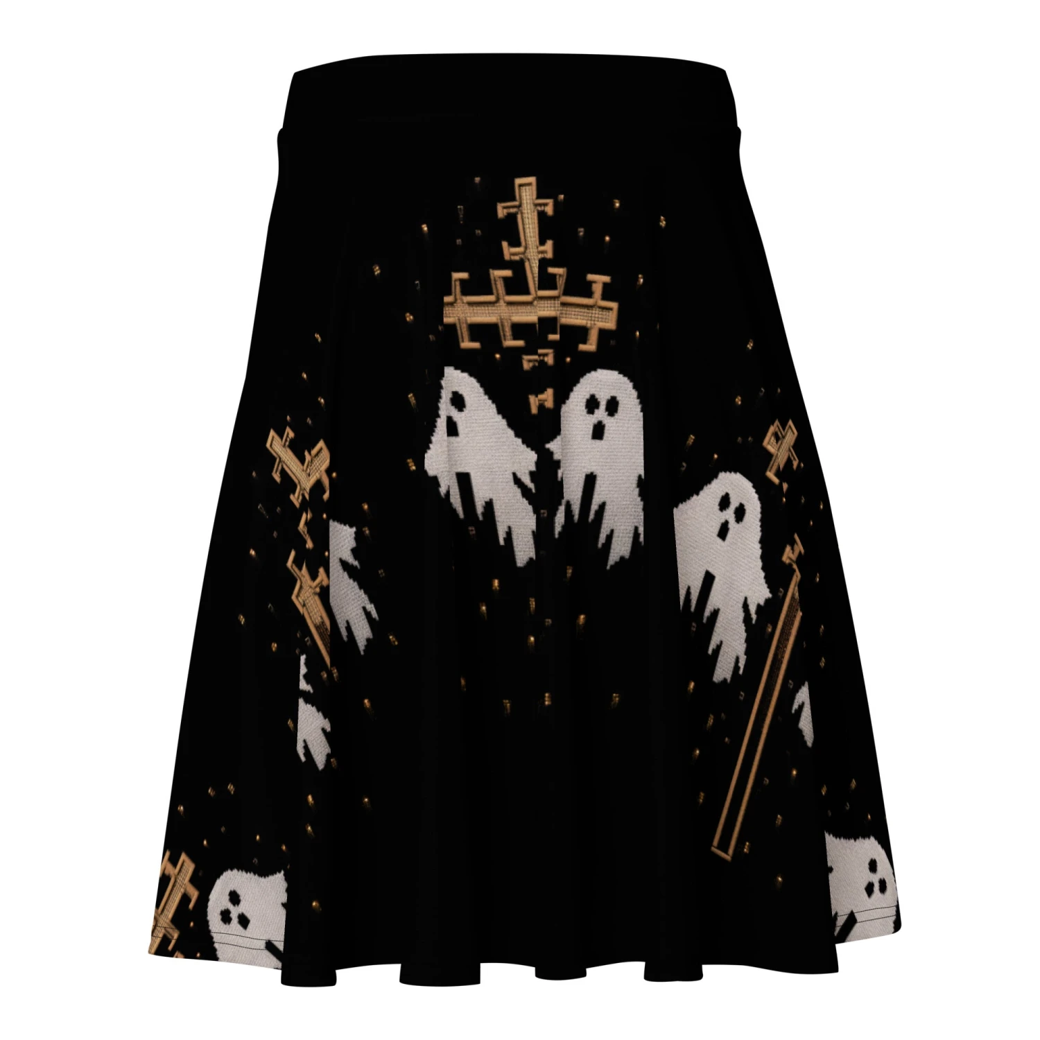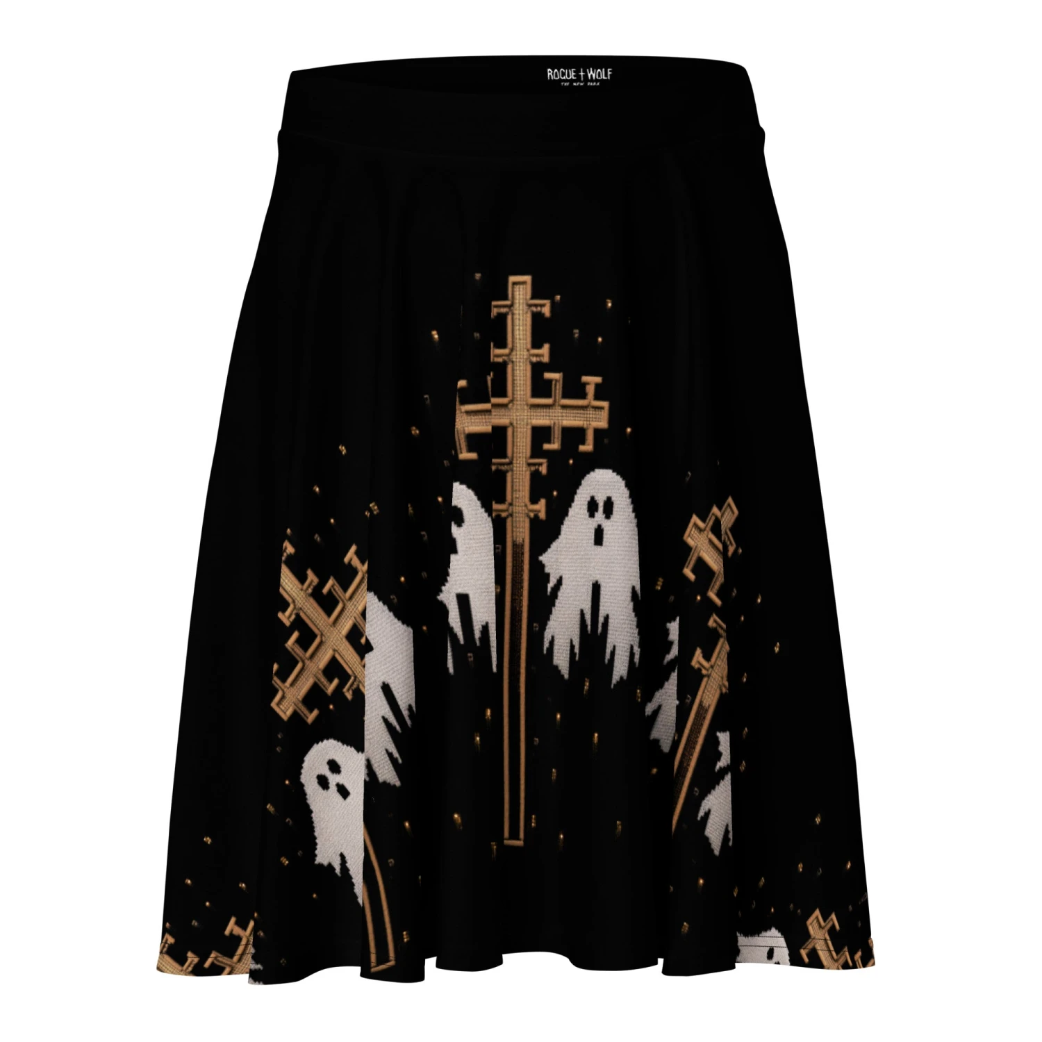 Softly sinister meets sweetly spiritual in this dark academia skater skirt featuring two adorable spectral twins dancing around a golden cross, stitched pixel-perfectly for nostalgic divination vibes. Slip into witchy alt style heaven—because even ghosts occasionally crave enlightenment.