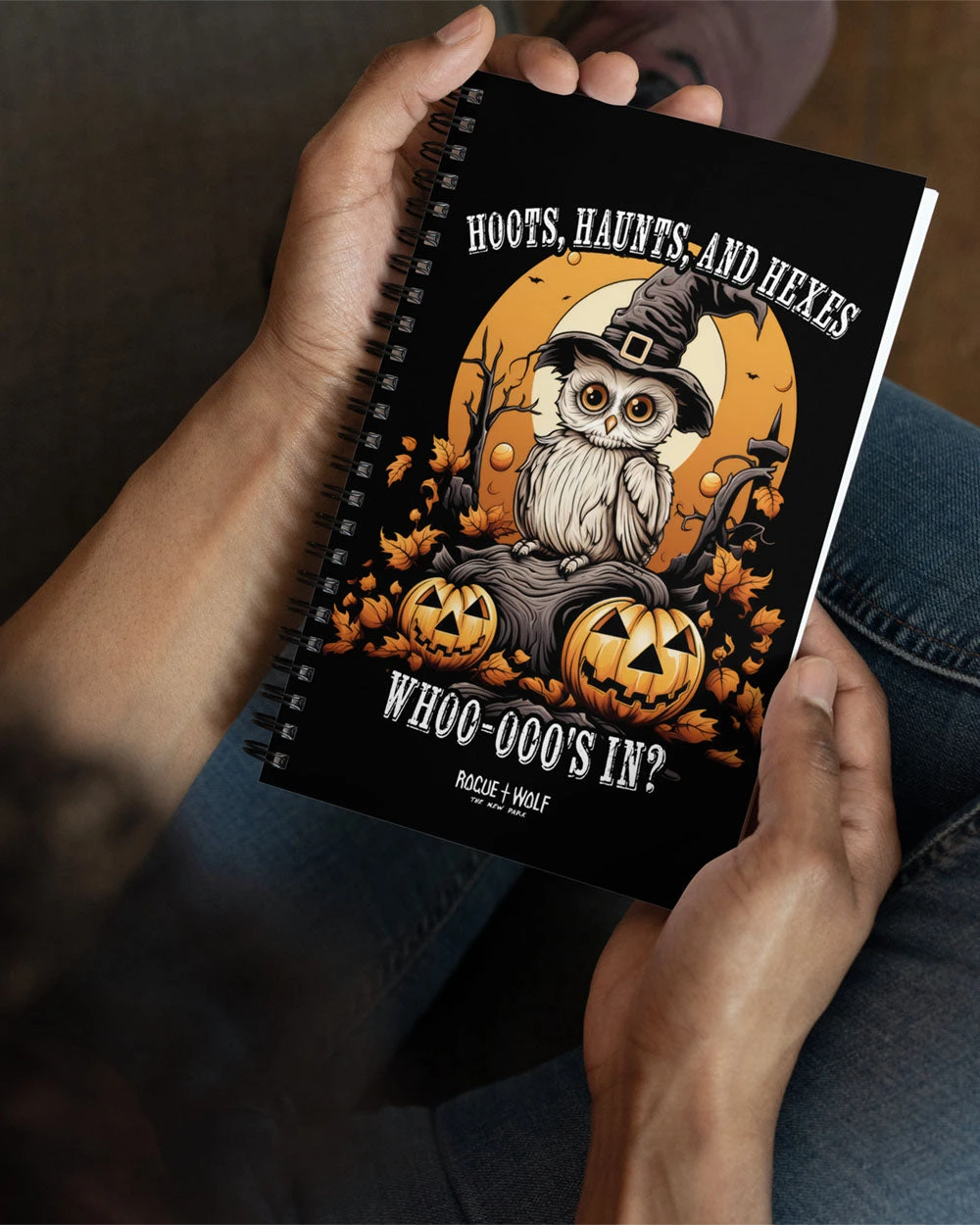 When twilight falls and the world is awash with moonlight, Rogue + Wolf brings forth a realm of gothic stationery to adorn your gothic home office. Dive deep into the world of dark academia with our Hoots, Haunts, and Hexes Spiral Notebook, the ultimate manifestation of Halloween spirit and grunge aesthetic.