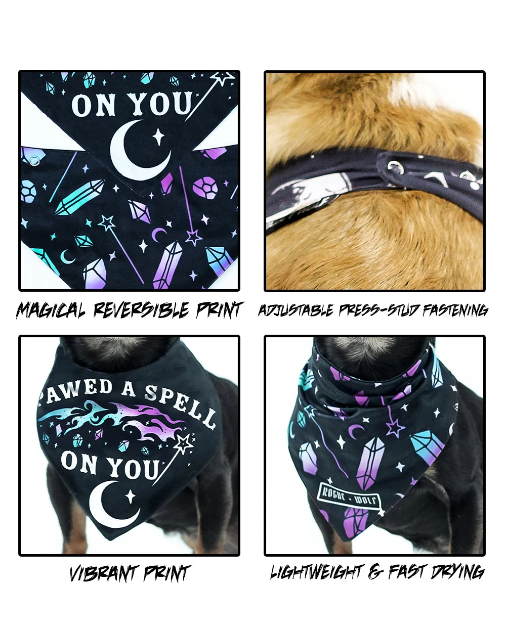 This magical Bandana comes with an enchanting pattern of crystals & wands on one side, with “I pawed a spell on you” printed on the reverse, because let’s face it, we are all under our familiars’ spells! Fast-drying, soft fabric with adjustable press-stud fastening so you can pop it on and off with ease!