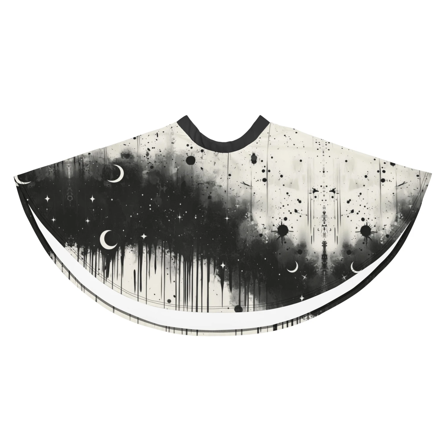 Swirl into the void and dance among stars with a skirt that’s as otherworldly as your midnight rituals. Crescent moons and ethereal tendrils blend in a monochrome symphony—perfect for witches who know all life’s best magic happens after dark.