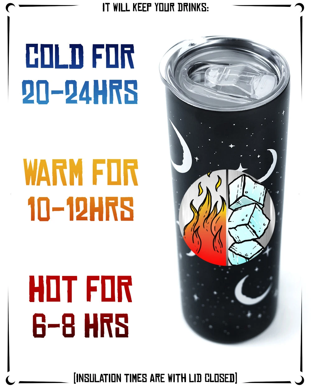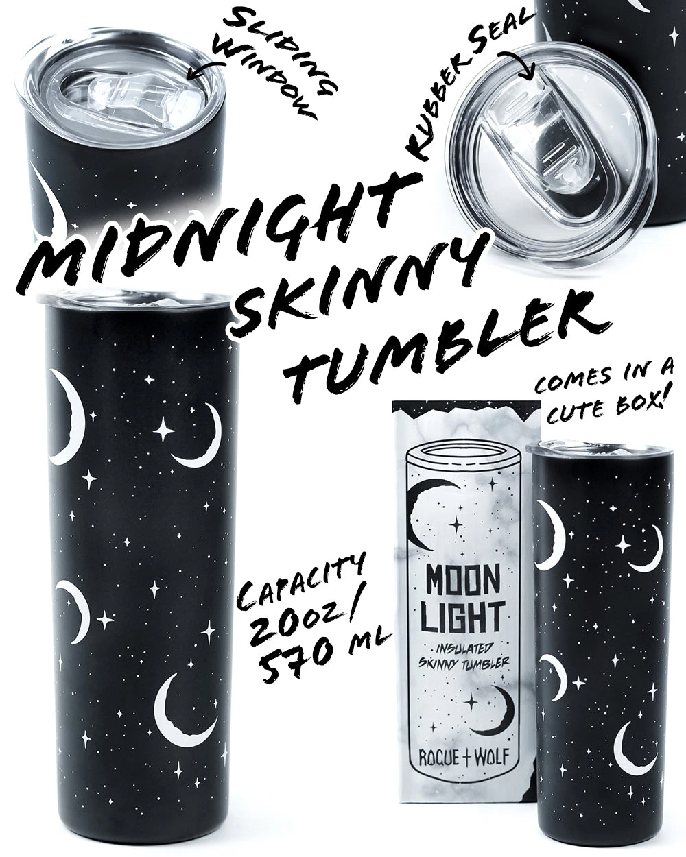 Hold the warmth of the stars within your hands with our Skinny Stainless Steel Moonlight Tumbler! A more compact (but equally beautiful) version of its predecessor, this Insulted Tumbler keeps your brews hot for just as long, while being much easier to carry if long walks in nature are your thing!