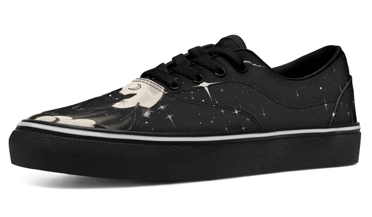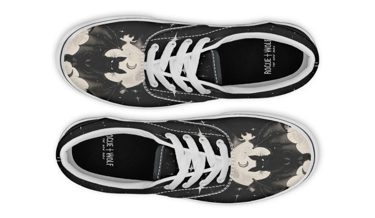 Glide through shadows and moonbeams in kicks as darkly enchanting as your soul. Adorned with a shadowy bat basking in luminous moonlight, these sneakers blend comfy street style with an occult twist—a no-brainer pick for The Coven’s night wanderings. Vampire attacks not included. Probably.