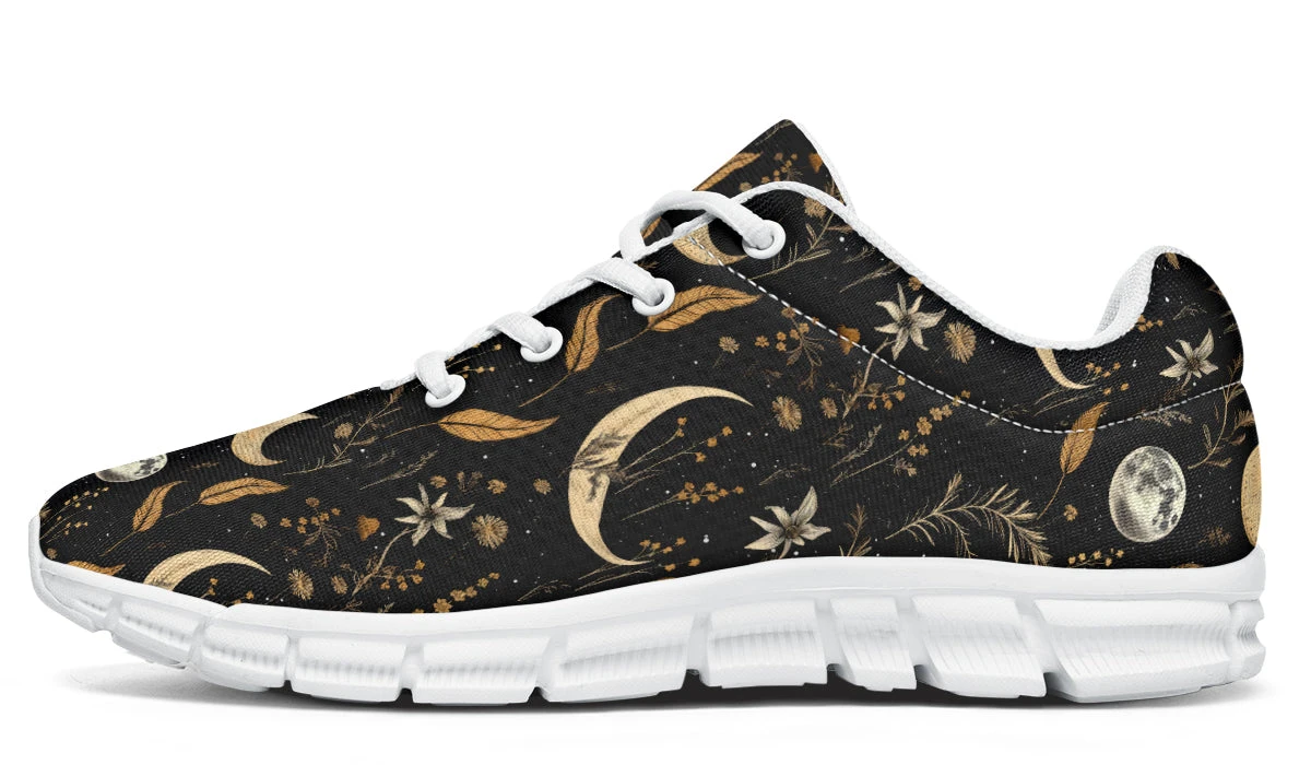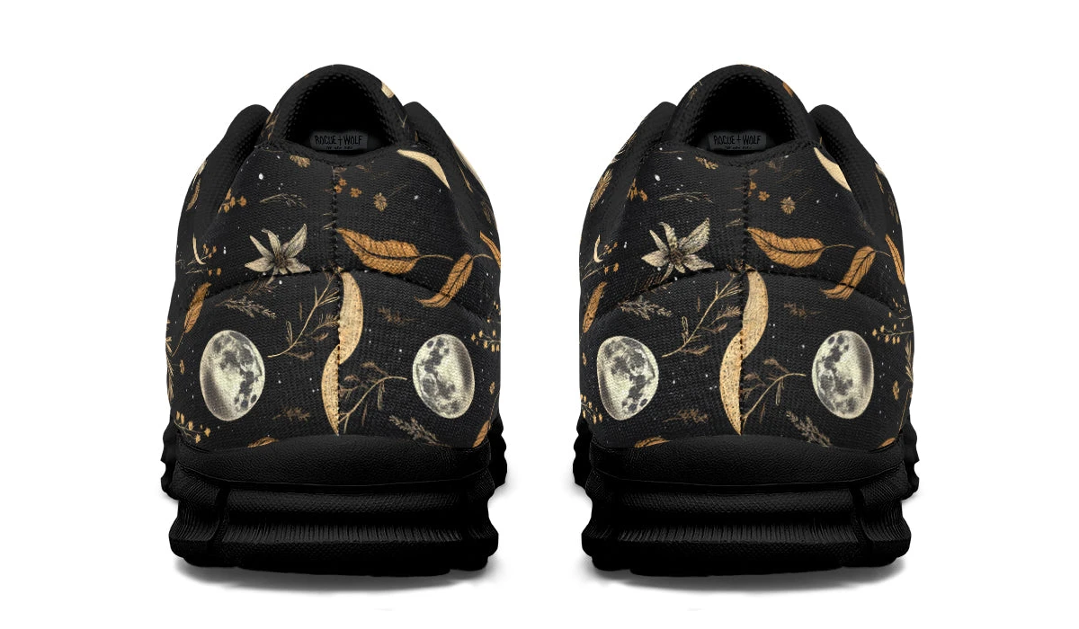 Step into a world of lunar enchantment every time you lace up these bewitching exercise shoes, adorned with a captivating pattern of moons and magical herbs on a black starry background. With each stride, you’ll feel the power of the celestial bodies and the wisdom of ancient botanical knowledge guiding your path. Just be careful not to accidentally summon any mischievous lunar spirits while you’re out for a run!