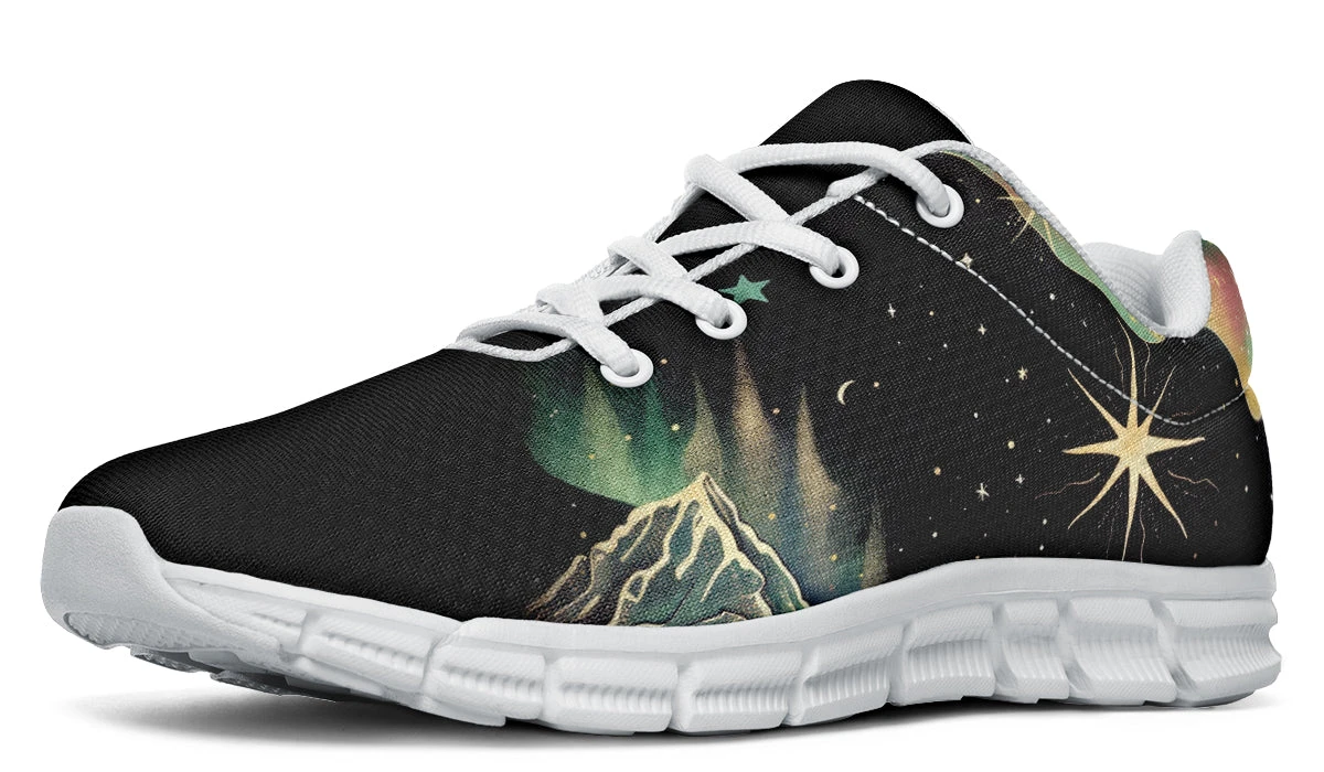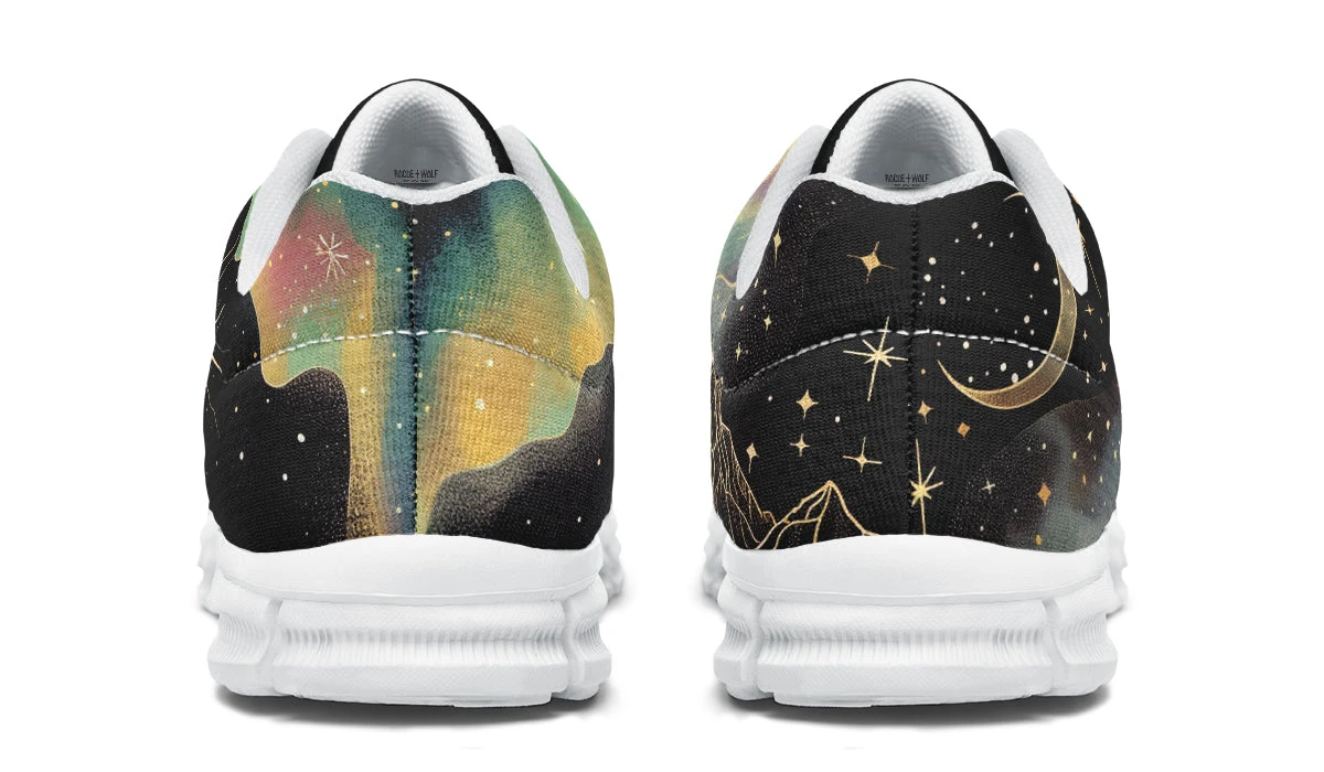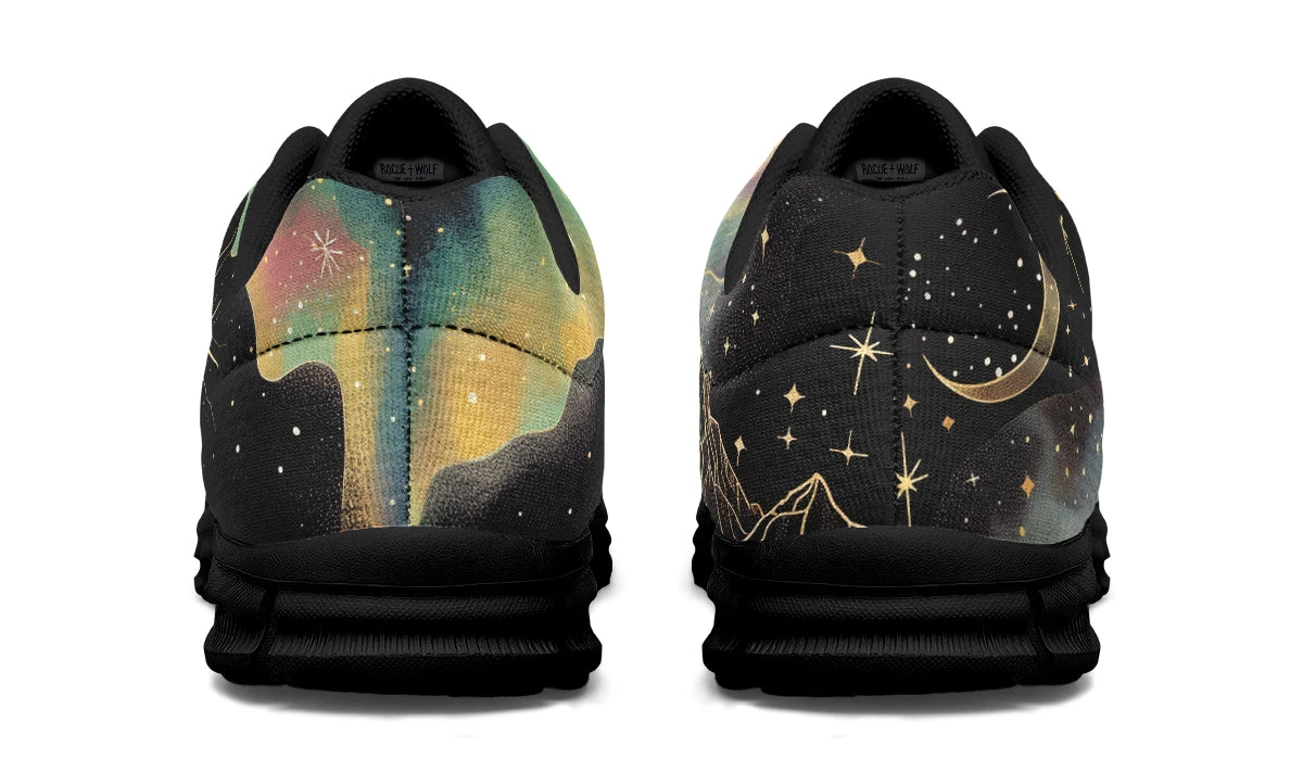 Ready to eclipse the mundane? Rogue + Wolf’s Northern Lights Athletic Sneakers bring the enchanting allure of the auroras right to your feet. Perfect for those who dare to dream and run under the moonlit sky.