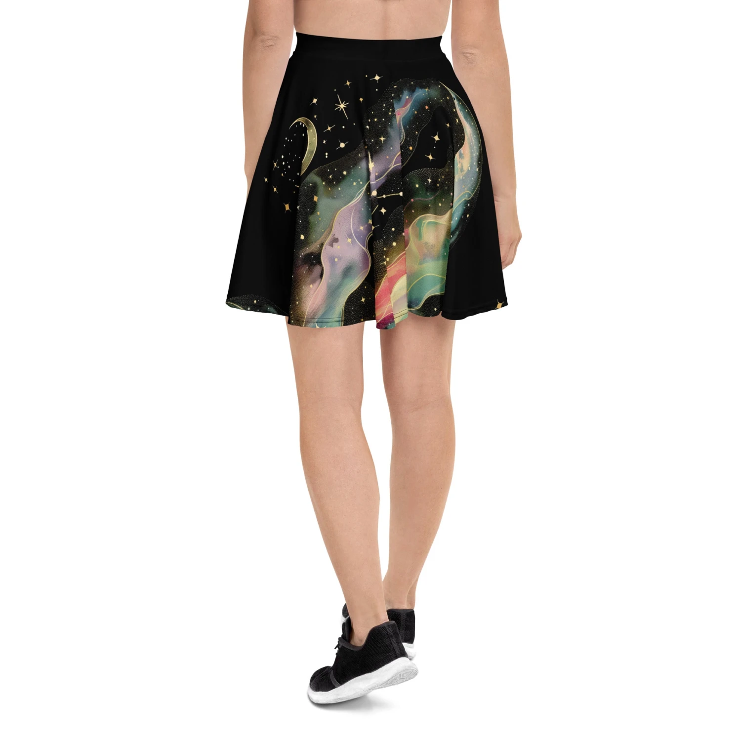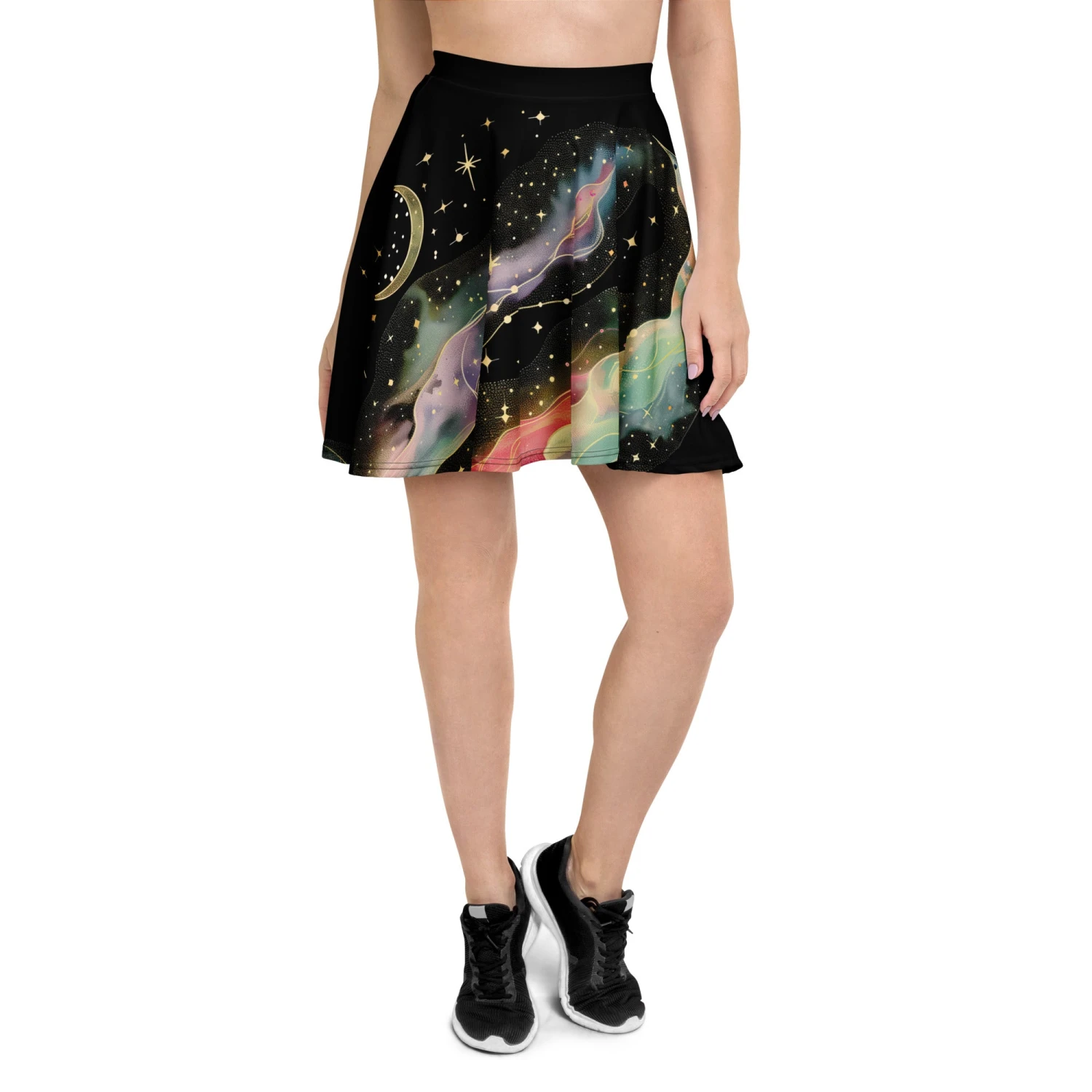 Dance through moonlit nights and cast a colorful enchantment wherever you roam in our Northern Lights Skater Skirt. Draped with hypnotic skies, bathed in dreamy auroras, it’s the witchy wear every moonchild dreams of. This skirt says, “I summon style,” without needing a spellbook.