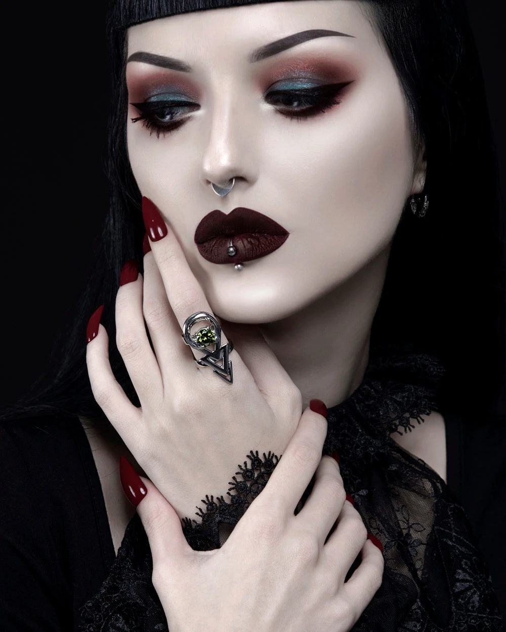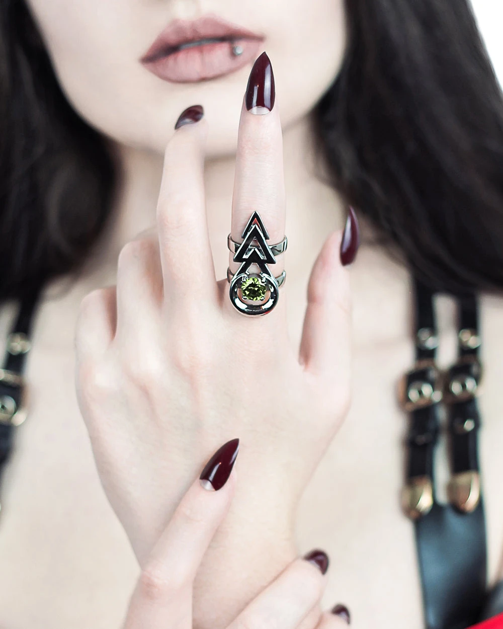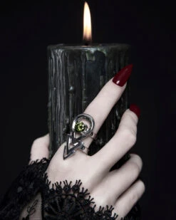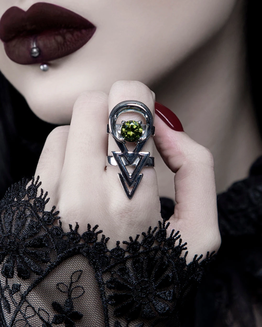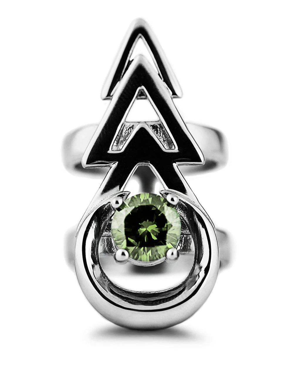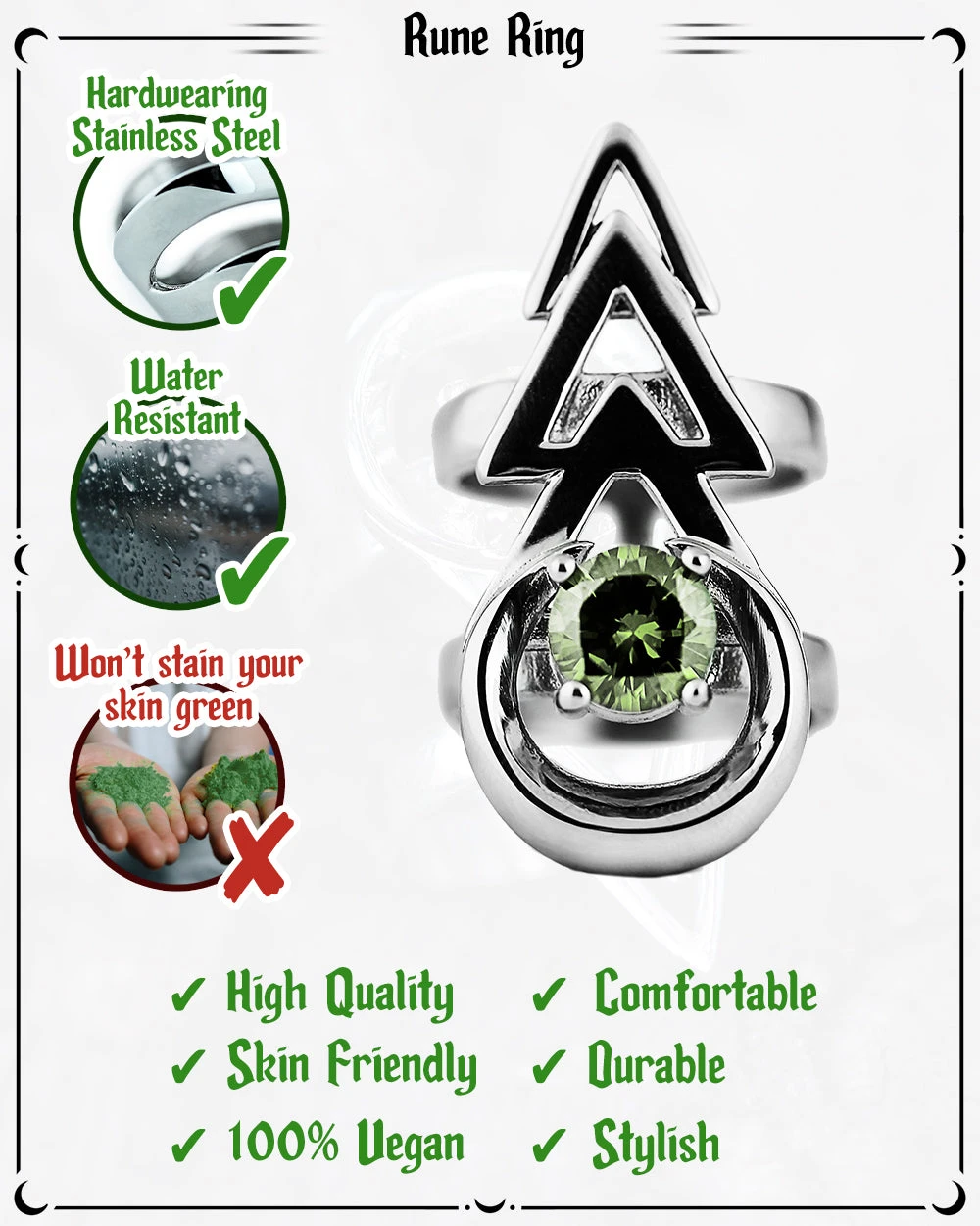 A magical Stainless Steel Ring with a Mirror Polish finish, decorated with mystical Pale Emerald Green Gemstone