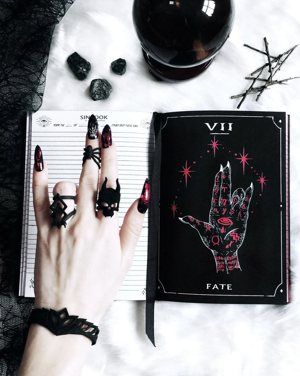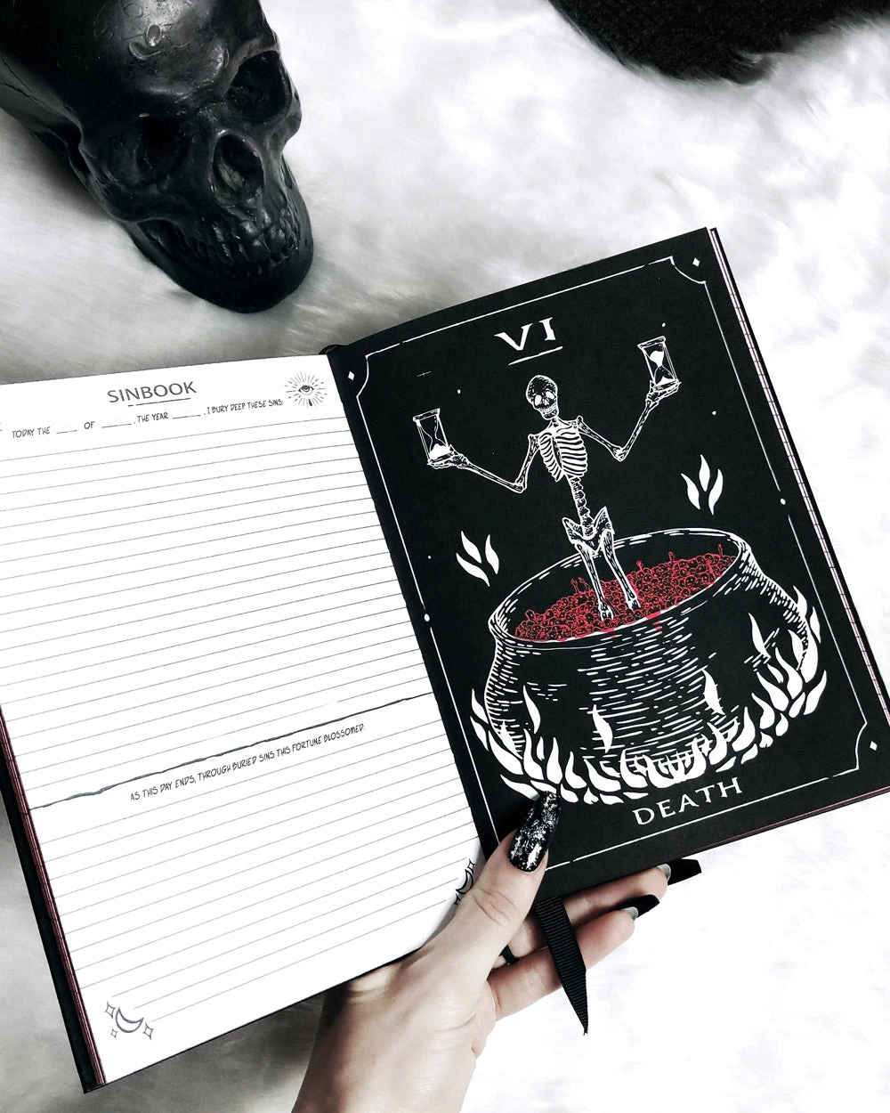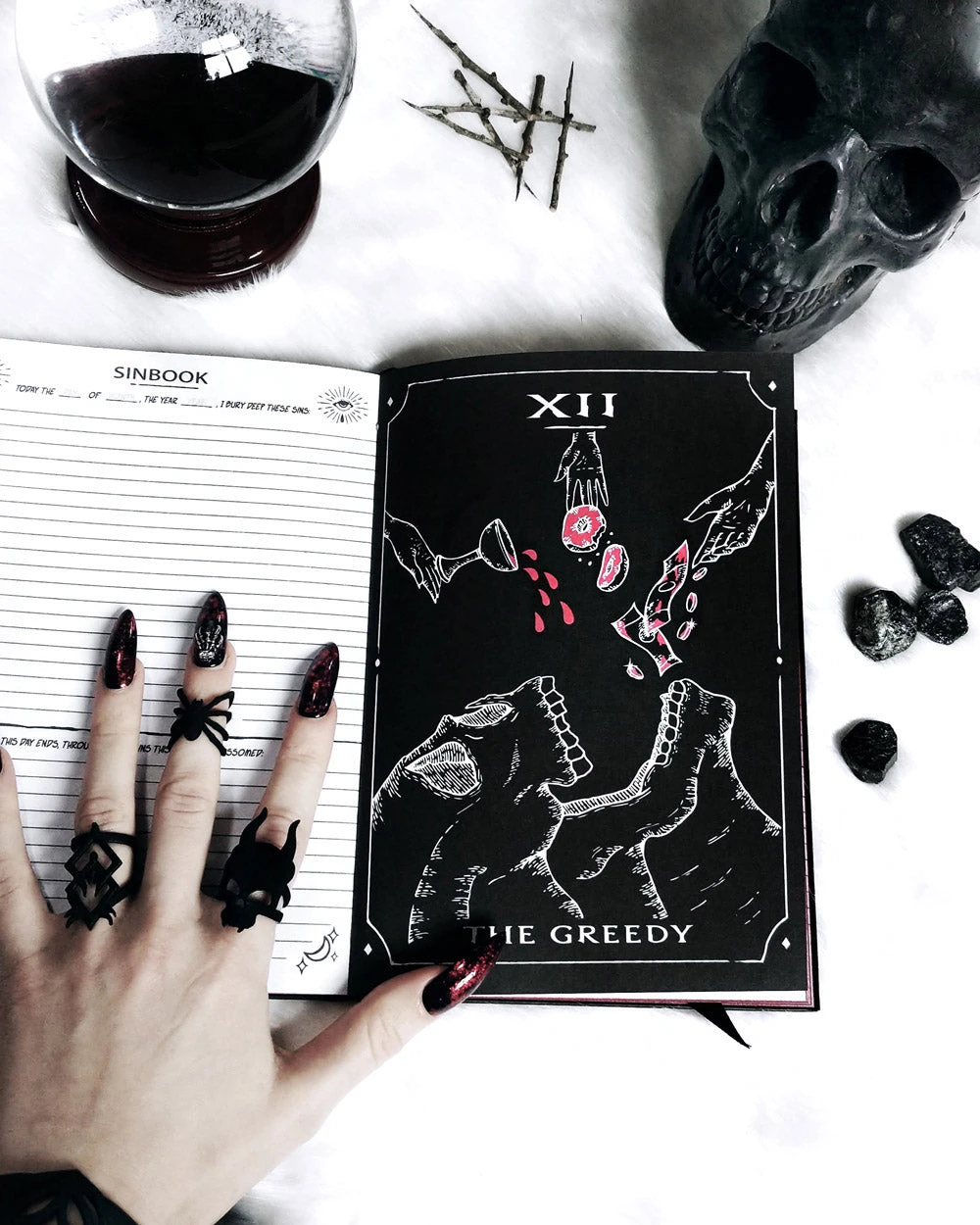 An elegantly illustrated notebook and diary, conjured to hold your innermost Sins and worries.