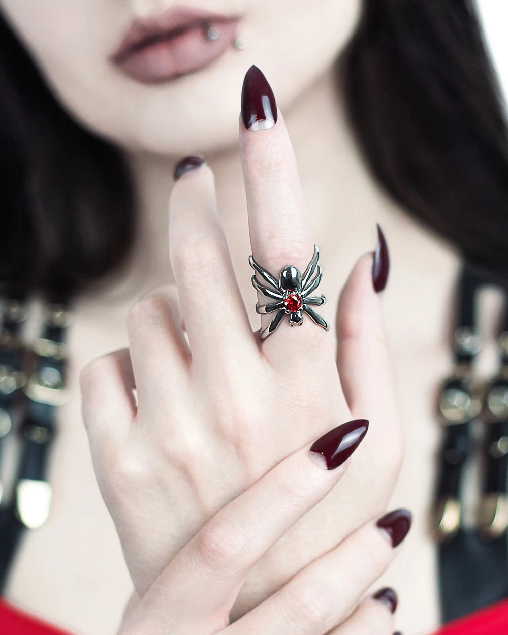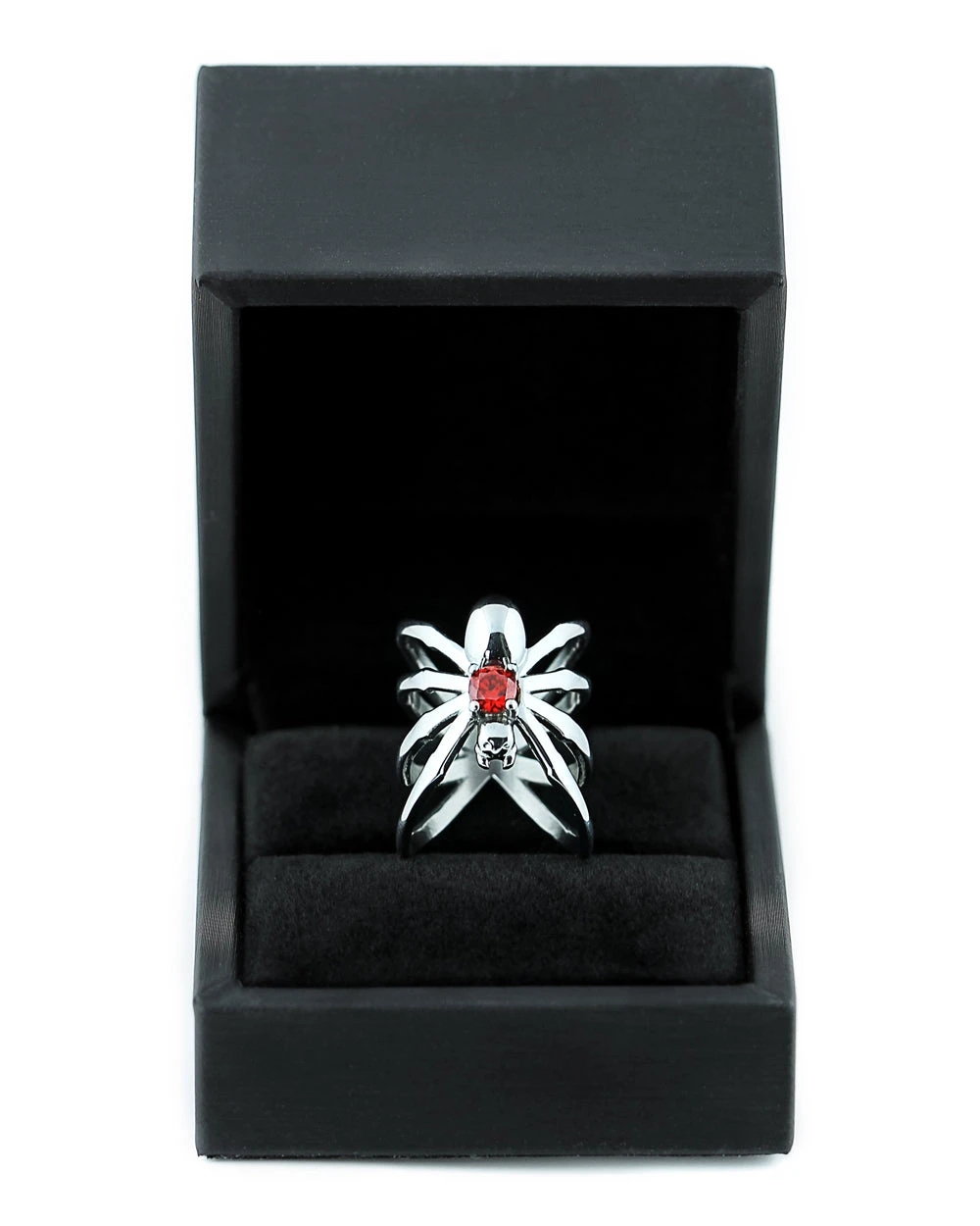 A magical Stainless Steel Ring with a Mirror Polish finish, enhanced by the allure of a Garnet-blood-like gemstone.