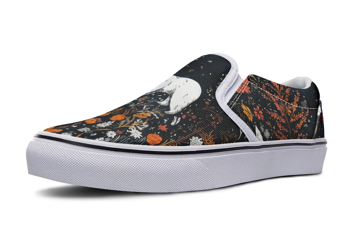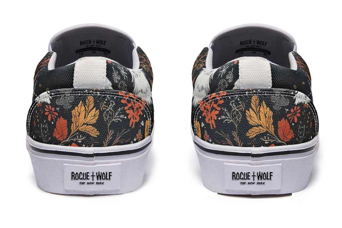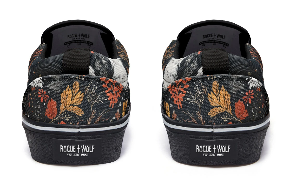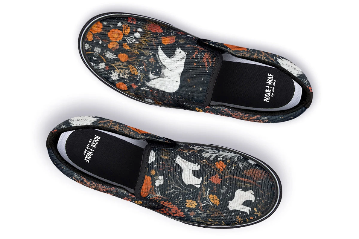 Immerse yourself in the mystical world where a ghostly white bear roams through an enchanted forest under a twilight sky. These Spirit Guardian Slipons invite you to wander in a serene, hidden wilderness, where nature meets myth and every step whispers magic.