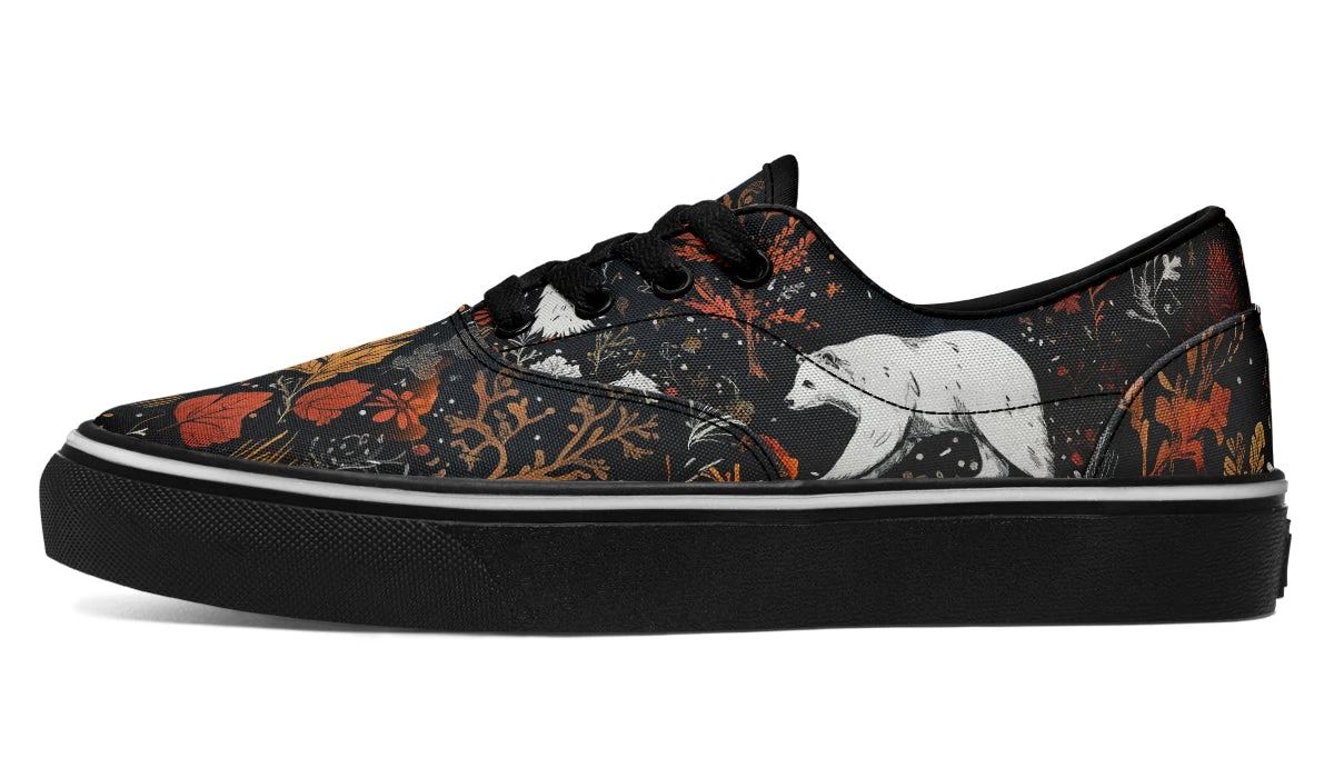 Wander between worlds with kicks that capture autumn’s dark enchantment—featuring a spectral bear guardian roaming mystic wilds steeped in twilight lore. They’re snazzy enough to summon compliments and eerie enough for The Coven’s approval—if you catch our “spirit” drift.