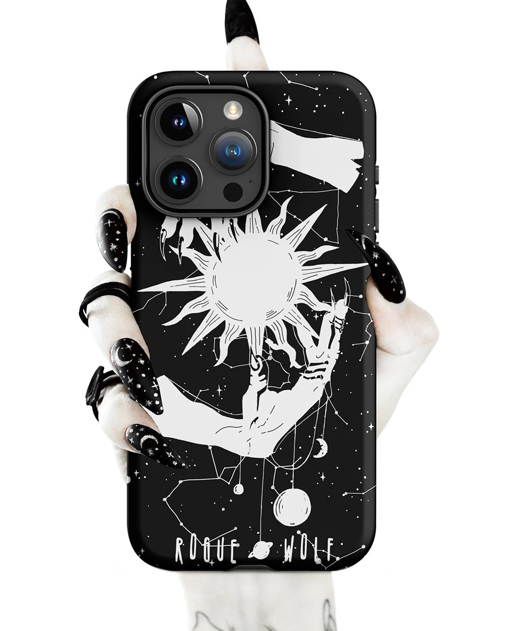 Dive deep into the celestial realms with Rogue + Wolf’s Starlight Tough Phone Case. Enveloped in the mystical embrace of a witch’s ritualistic hands, the Sun finds its sanctum, while planets adorn the ethereal canvas. Perfect as halloween gifts or christmas goth gifts for those who weave stories in the stars!