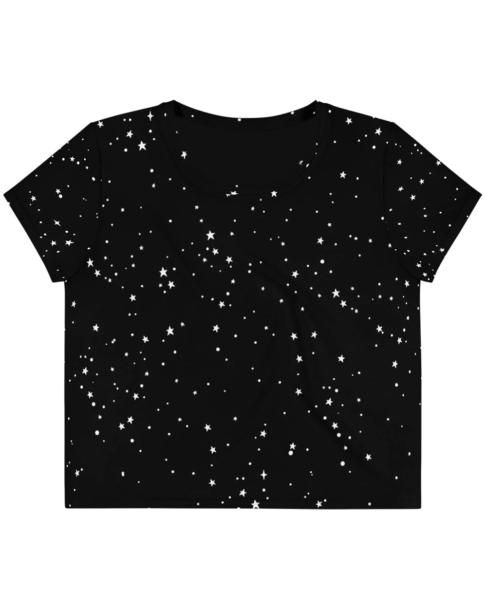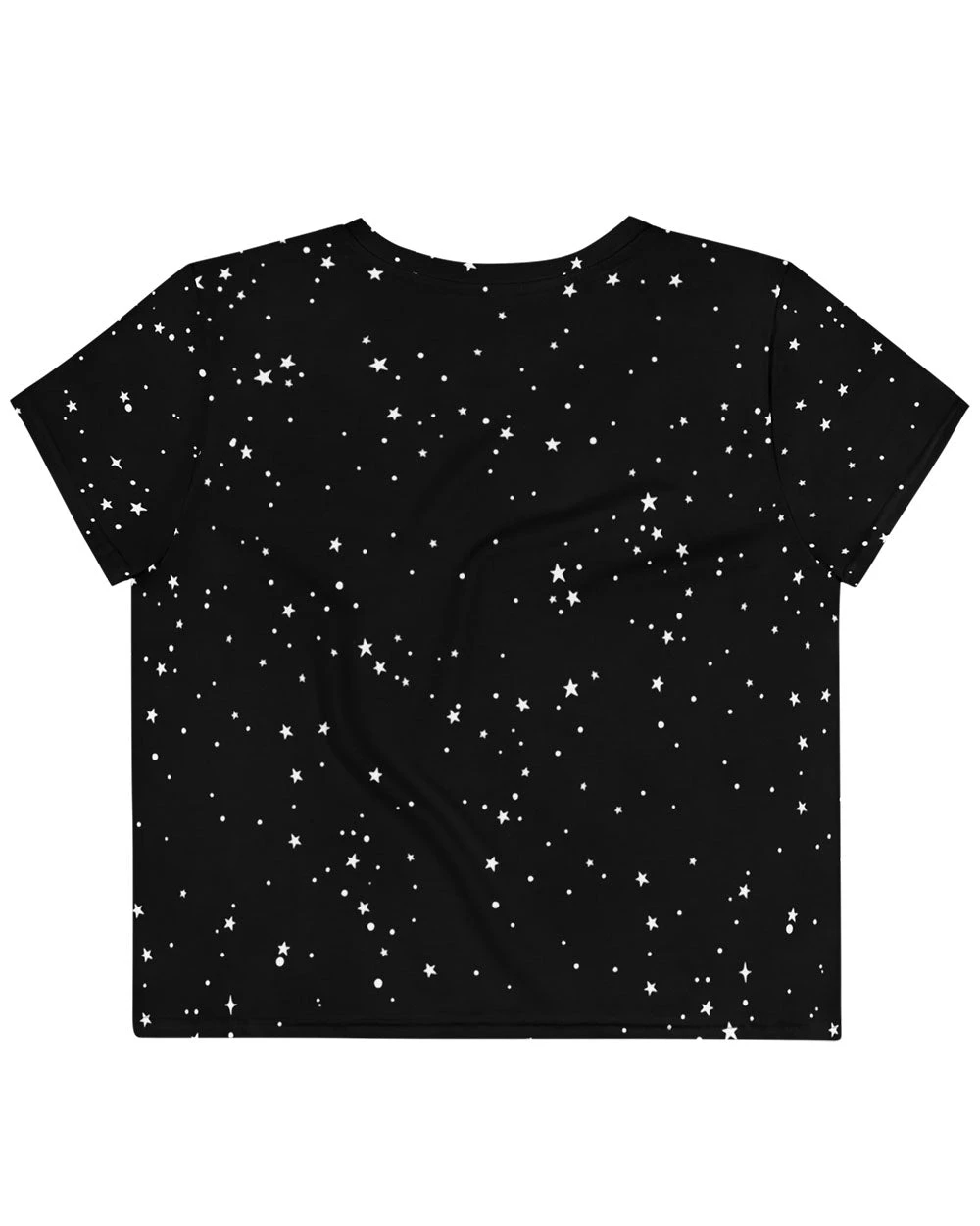 Our Starry Night Crop Top is an enchanting addition to the #Nugoth, #Gothic, or #Occult lover’s wardrobe. Born in the heart of the shadowy moonlight, this tee dances with the darkness, capturing the ethereal beauty of a celestial night peppered with twinkling stars. Craft it into your dark academia staple, or elevate your witchy style with a sprinkle of stardust.