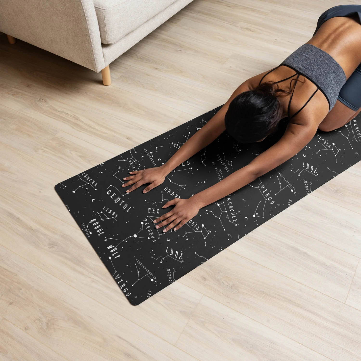 Step onto the ‘Stellar Yoga Mat’ and find yourself in a bewitched night sky, a celestial artwork where constellations trace tales of ancient mysteries across the abyss. Perfect for the souls seeking an alternative style, this yoga mat unrolls a cosmic canvas, inviting yoga lovers to a nightly ritual of stretch and serenity, where every pose feels like a whispered secret to the universe. This yoga mat is a realm where the witchy style meets the stars. Dive into the darkness, and who knows, you might just find your inner witch waiting at the Orion’s Belt!