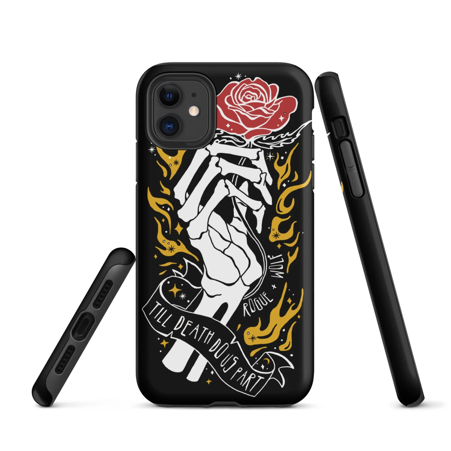 Unveiling the “Till Death Do Us Part” Tough Phone Case for iPhone: a shockproof phone case where gothic romance and technology embrace. A poignant reminder of love’s eternal dance, seamlessly entwined with your device, whispering tales of devotion and undying affection.