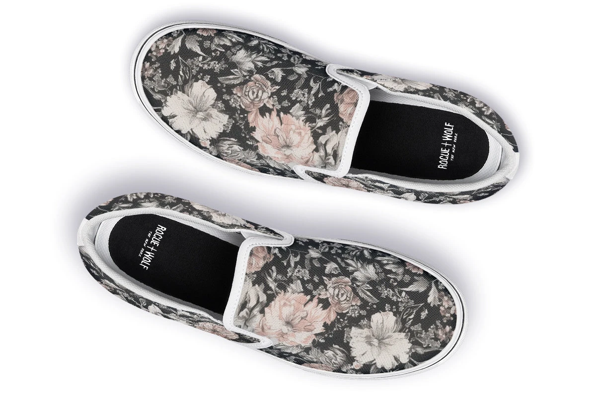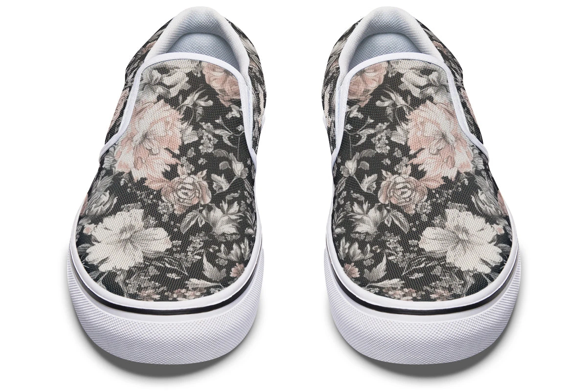 Step into a realm of timeless elegance with our Vintage Peonies Slipons.