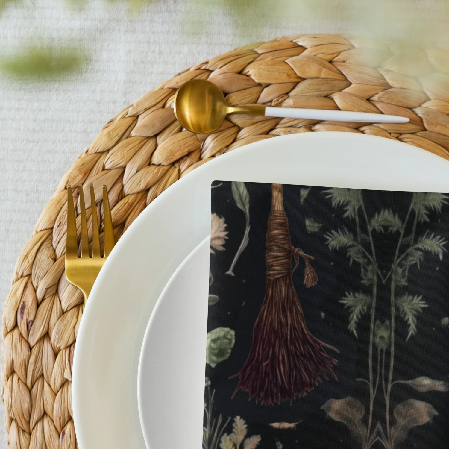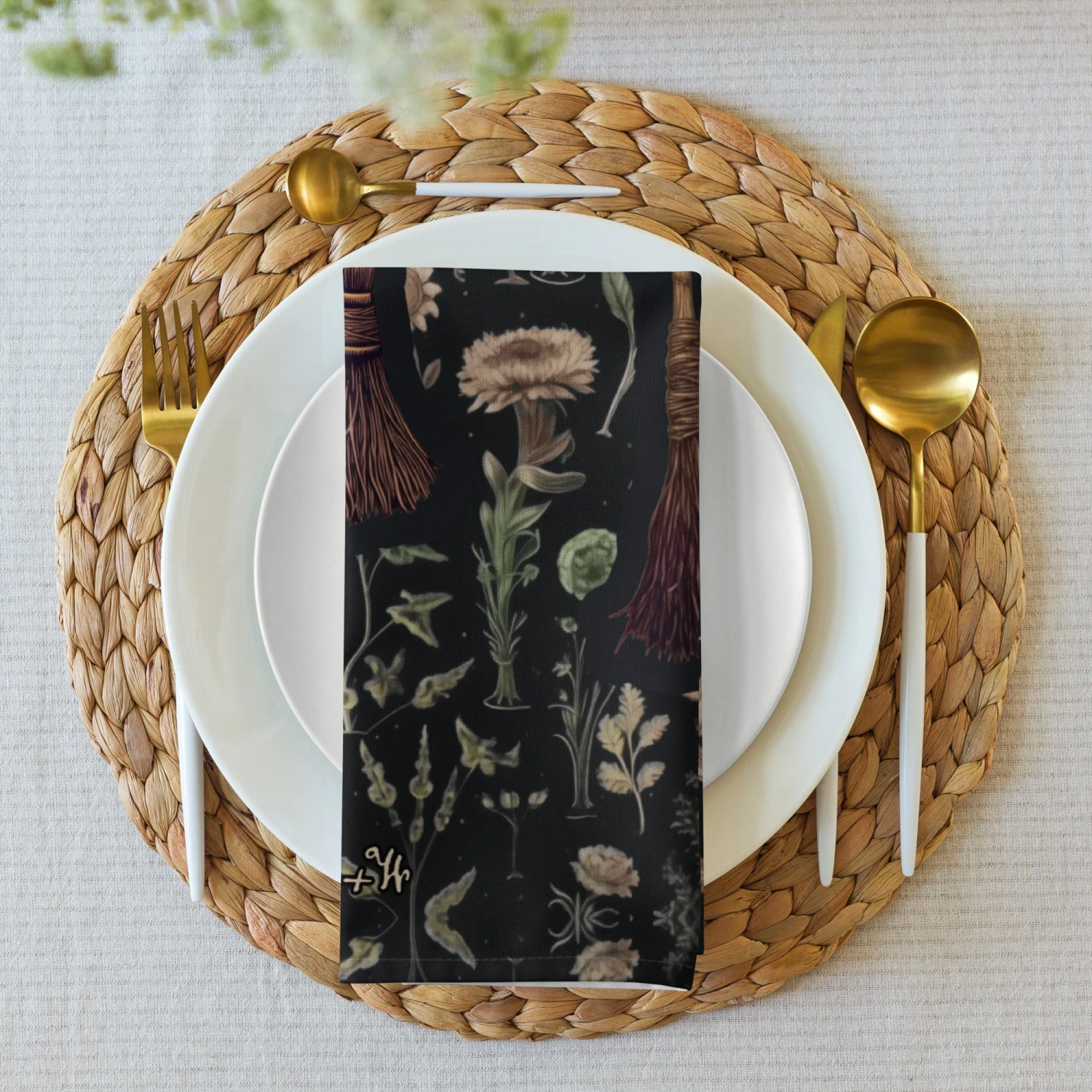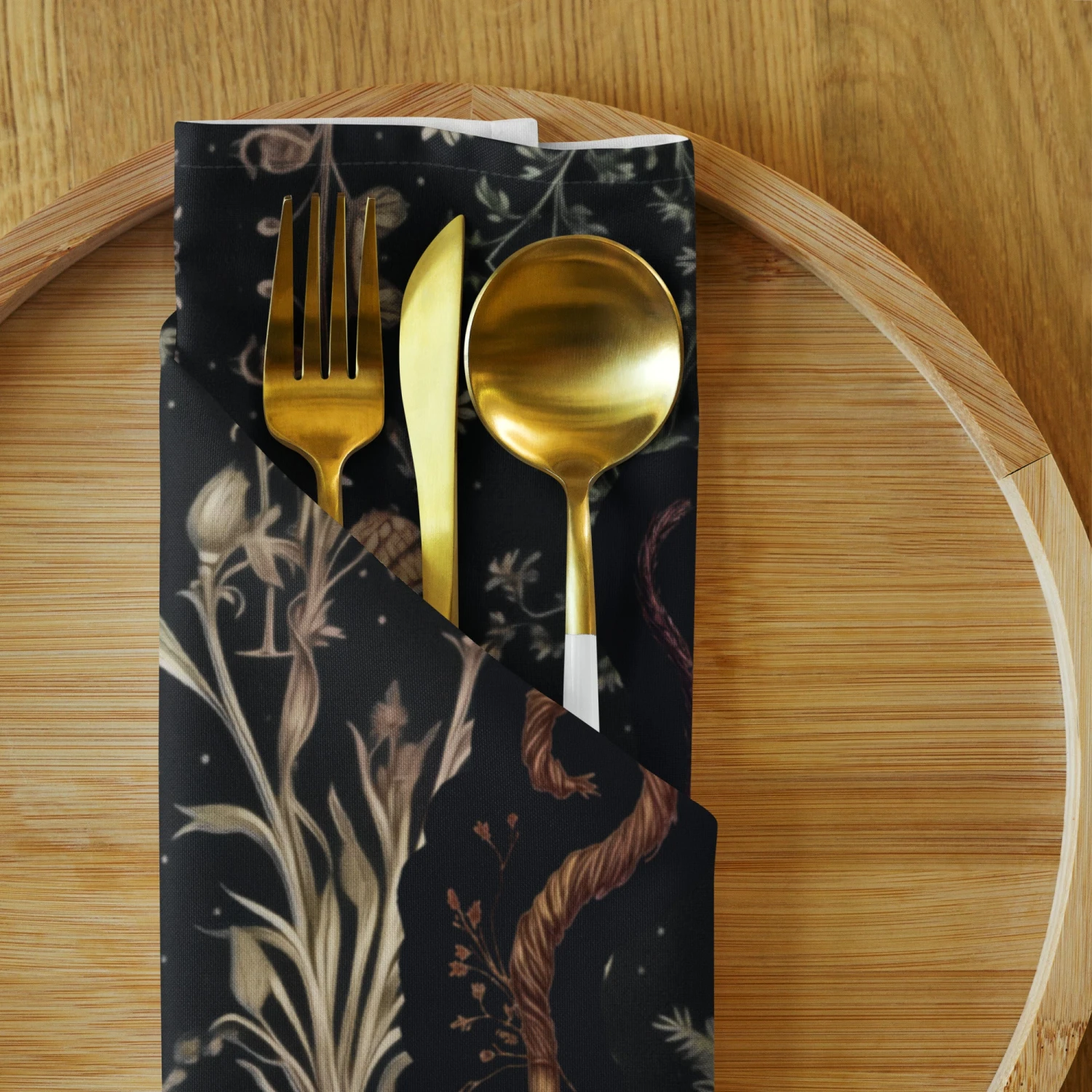 Infuse your dining realm with an enchantment of old-world witchery – our Witches’ Broomsticks Cloth Napkin Set will cast a spellbinding touch on your dark academia tablescape. Each napkin is a silhouette of witchy lore, ready to conjure cozy botanical evenings and gothic dinner parties.